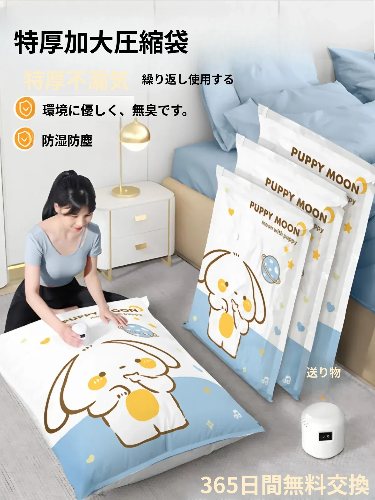 真空圧縮袋 衣類・布団専用 便利な空気抜き不要!厚手デザインで衣服や羽毛布団をしっかり収納。省スペースで整理整頓を実現!大容量でお部屋をスッキリ!