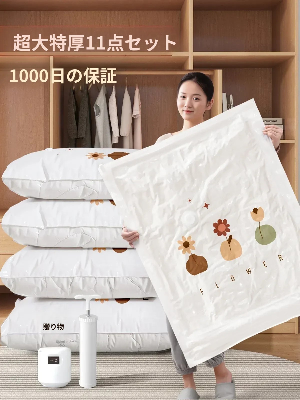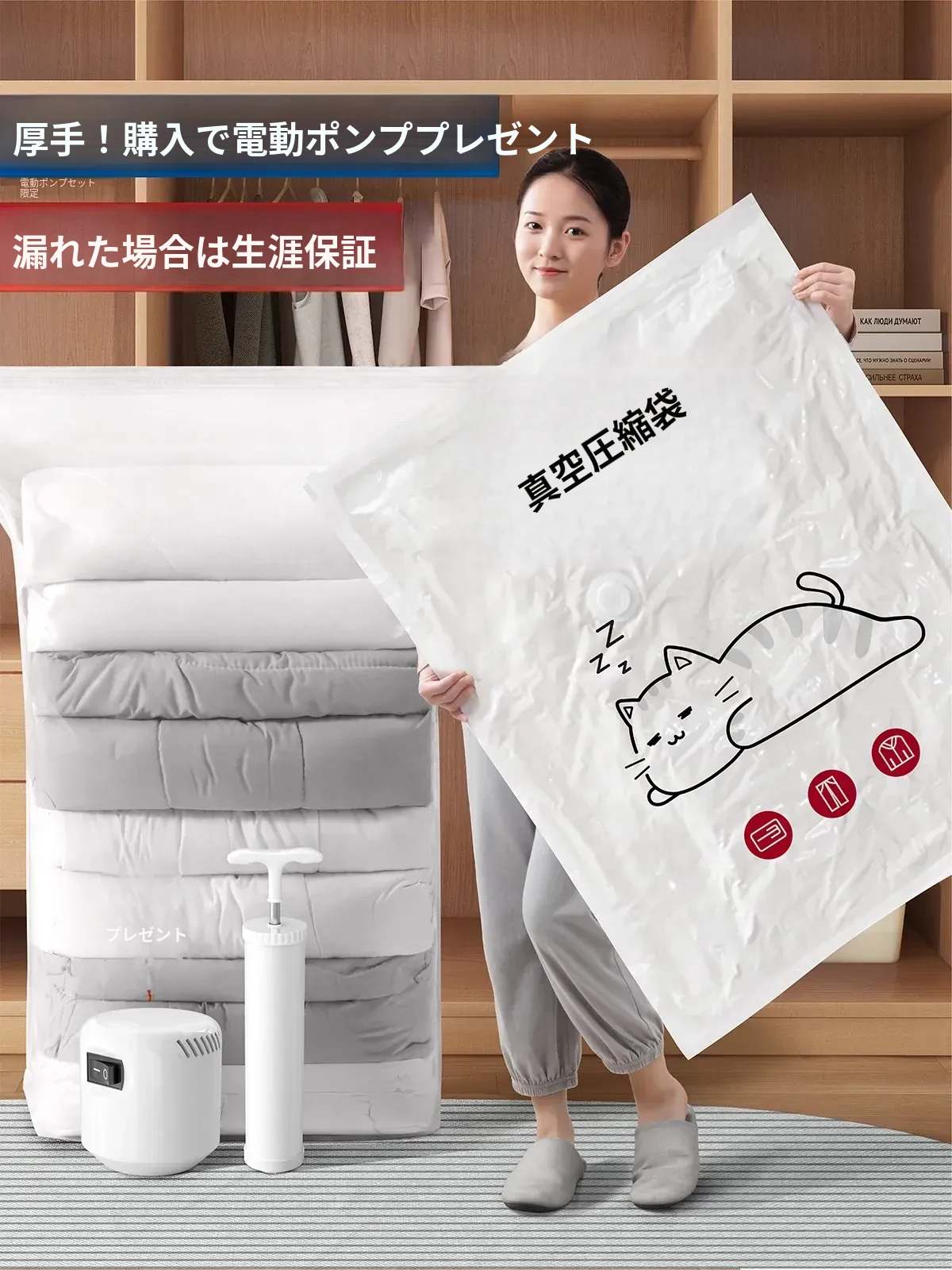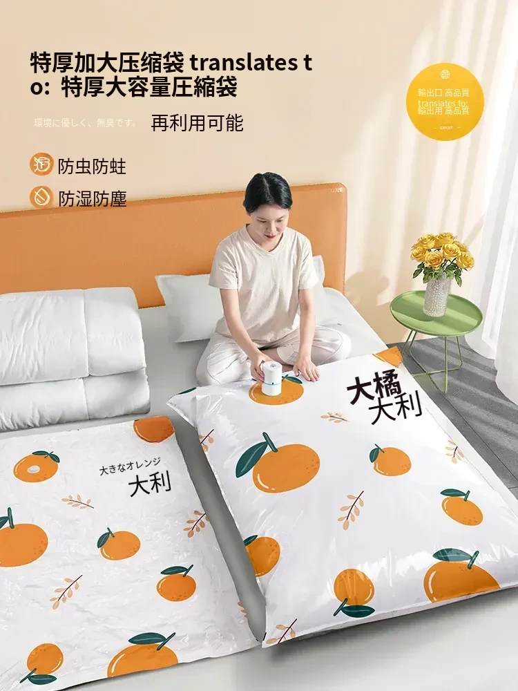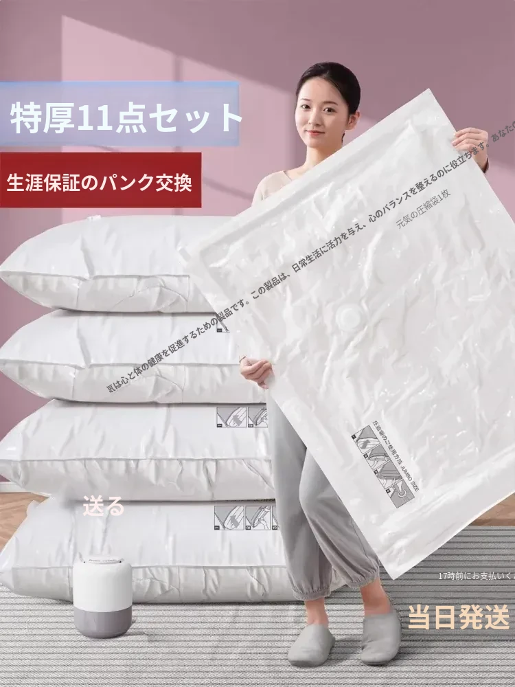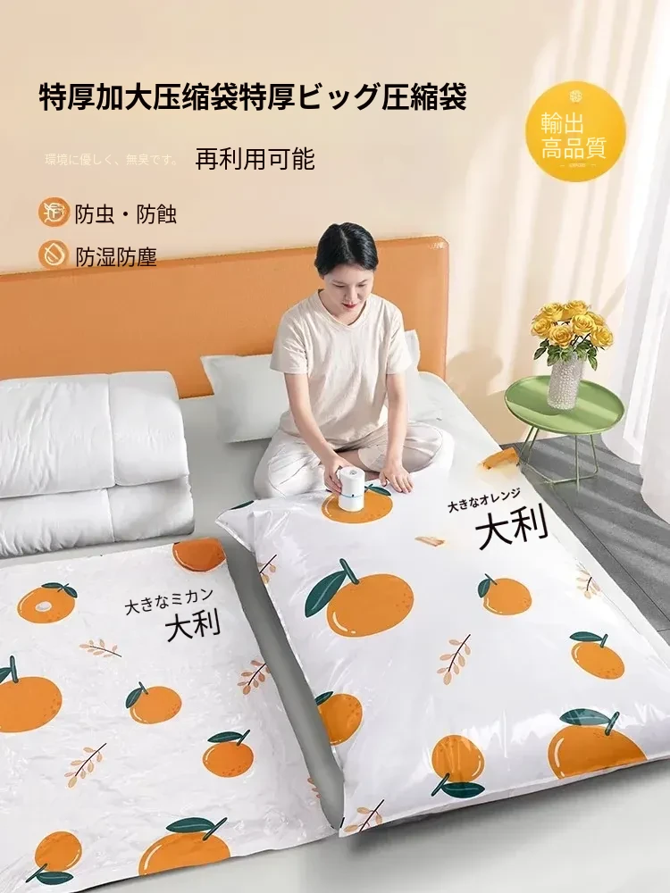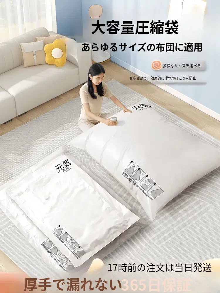 衣類・布団用真空圧縮袋|厚手・大容量で収納力抜群!ダウンジャケットや衣類をしっかり密封し、スペースを有効活用!家庭に最適なアイテムです。