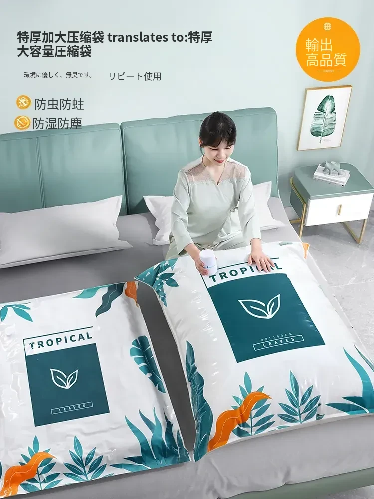 厚手真空圧縮バッグ - 衣類や布団をすっきり収納!空気を抜いて、スペースを最大限に活用!羽毛布団や冬服にぴったりなアイテムです。