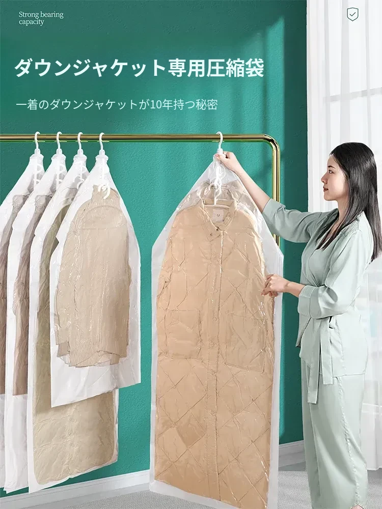 ダウンジャケット収納袋 ハンギング式真空圧縮袋 衣類専用 引っ越し用 真空密封 キャリーバッグに最適!スペースを節約し、整理整頓をサポート!