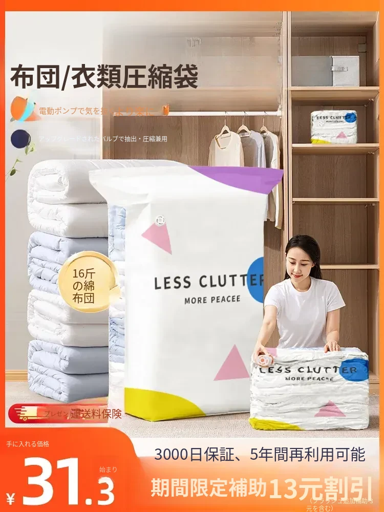 衣類や布団もスッキリ収納!電動ポンプ付き真空圧縮袋 - 厚手素材で安心、家庭用に最適!お洋服や毛布をコンパクトにまとめて、スペースを有効活用!
