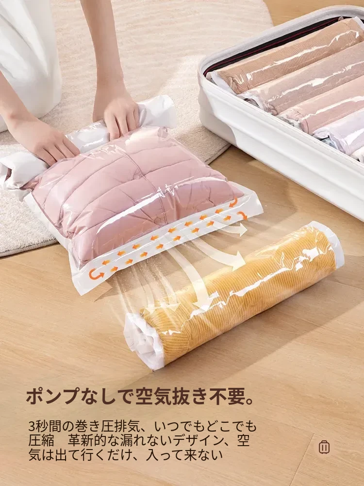 真空圧縮袋 - 旅行や収納に最適!布団や衣類、ダウンジャケットもすっきり整理。コンパクトにまとめて、スーツケースやクローゼットにぴったり!おしゃれなデザインで、あなたの整理整頓をサポートします。
