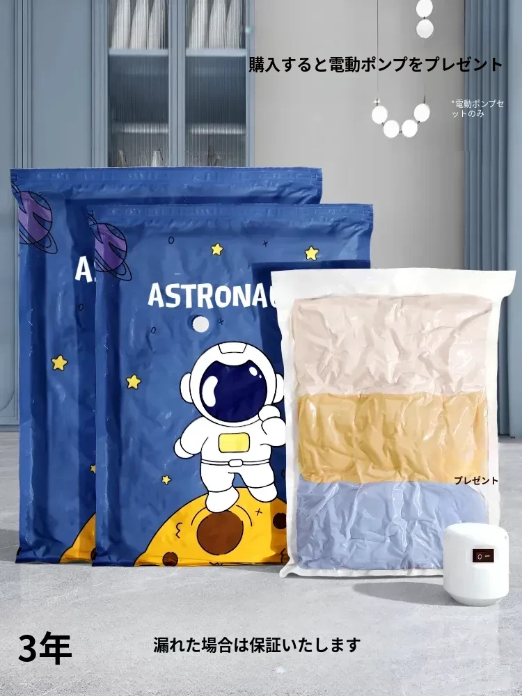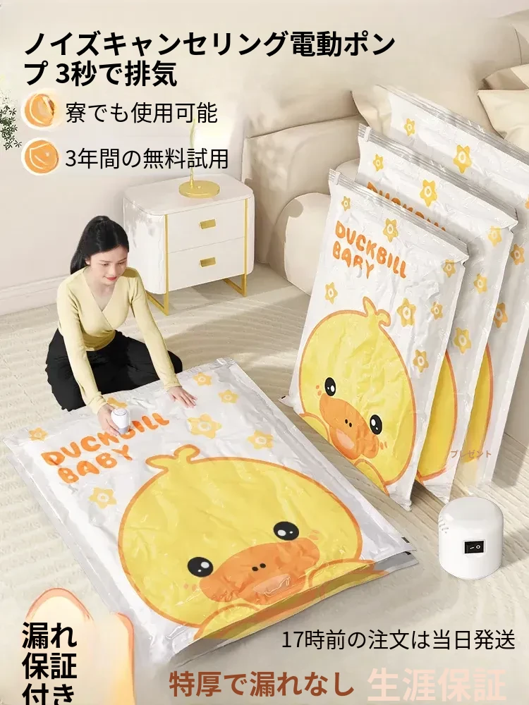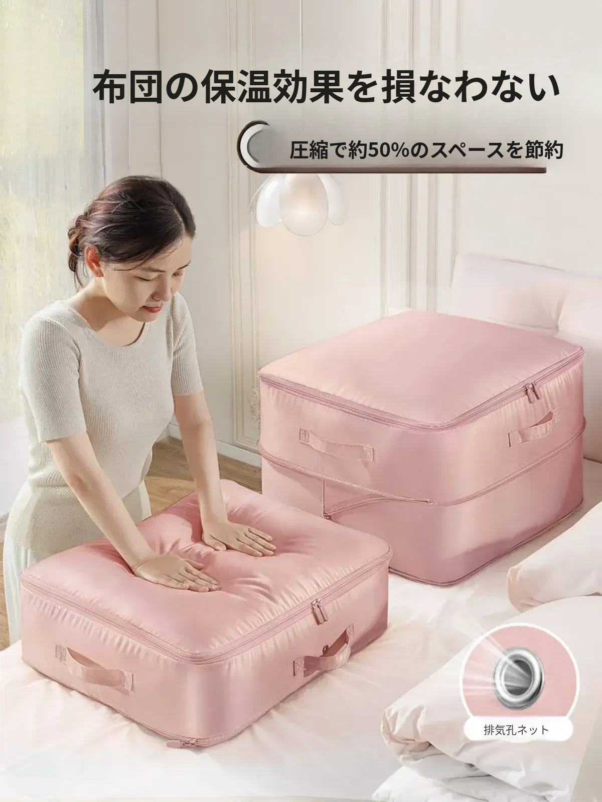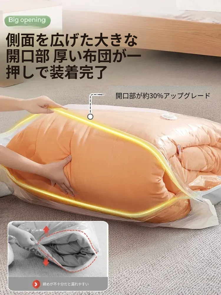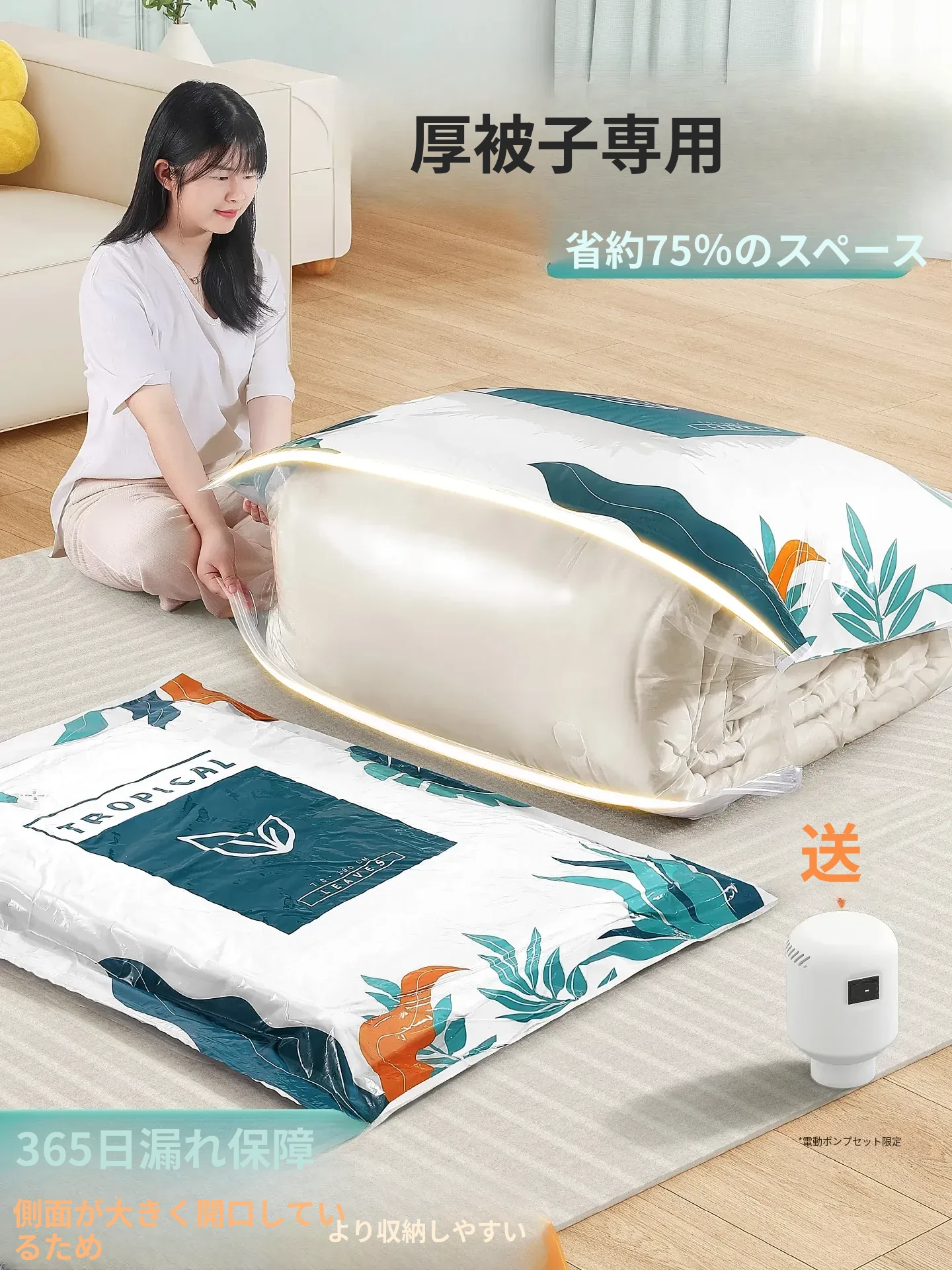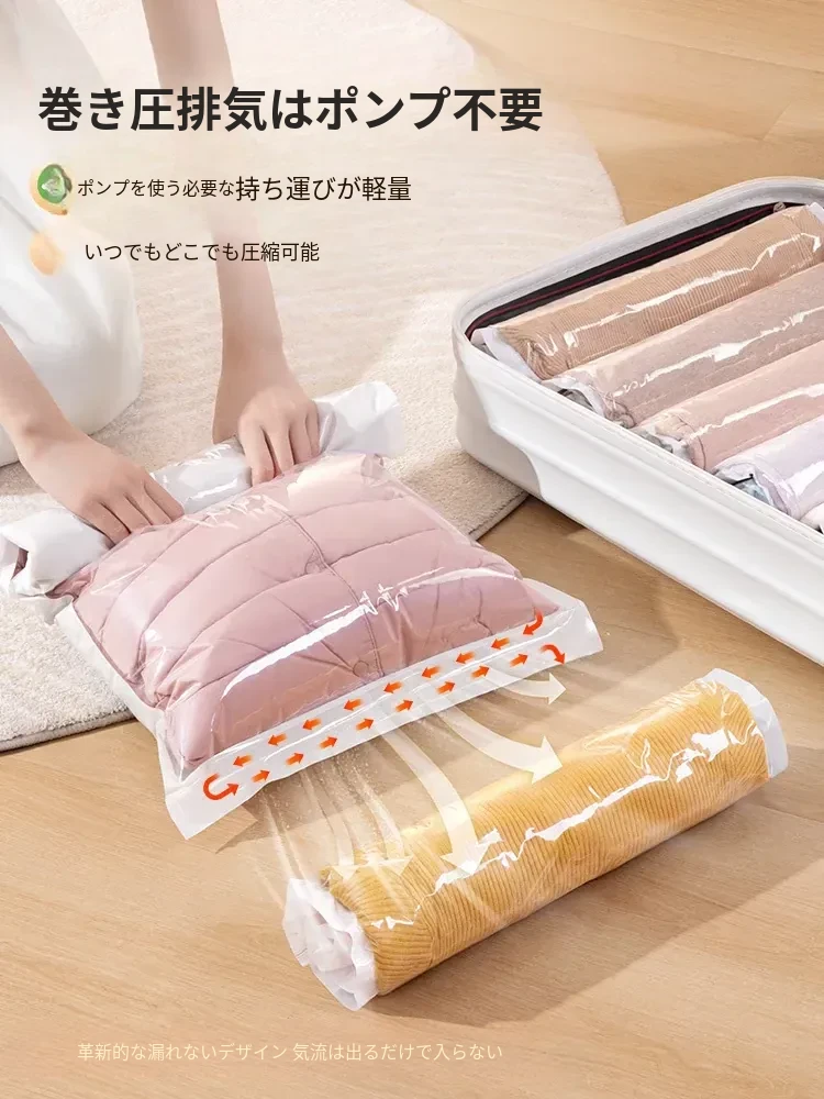 真空圧縮袋・衣類収納袋|羽毛布団や衣服に最適!旅行や引越しに便利な空気抜きバッグで、スペースを大幅に節約!整理整頓も簡単で、清潔に保てます。