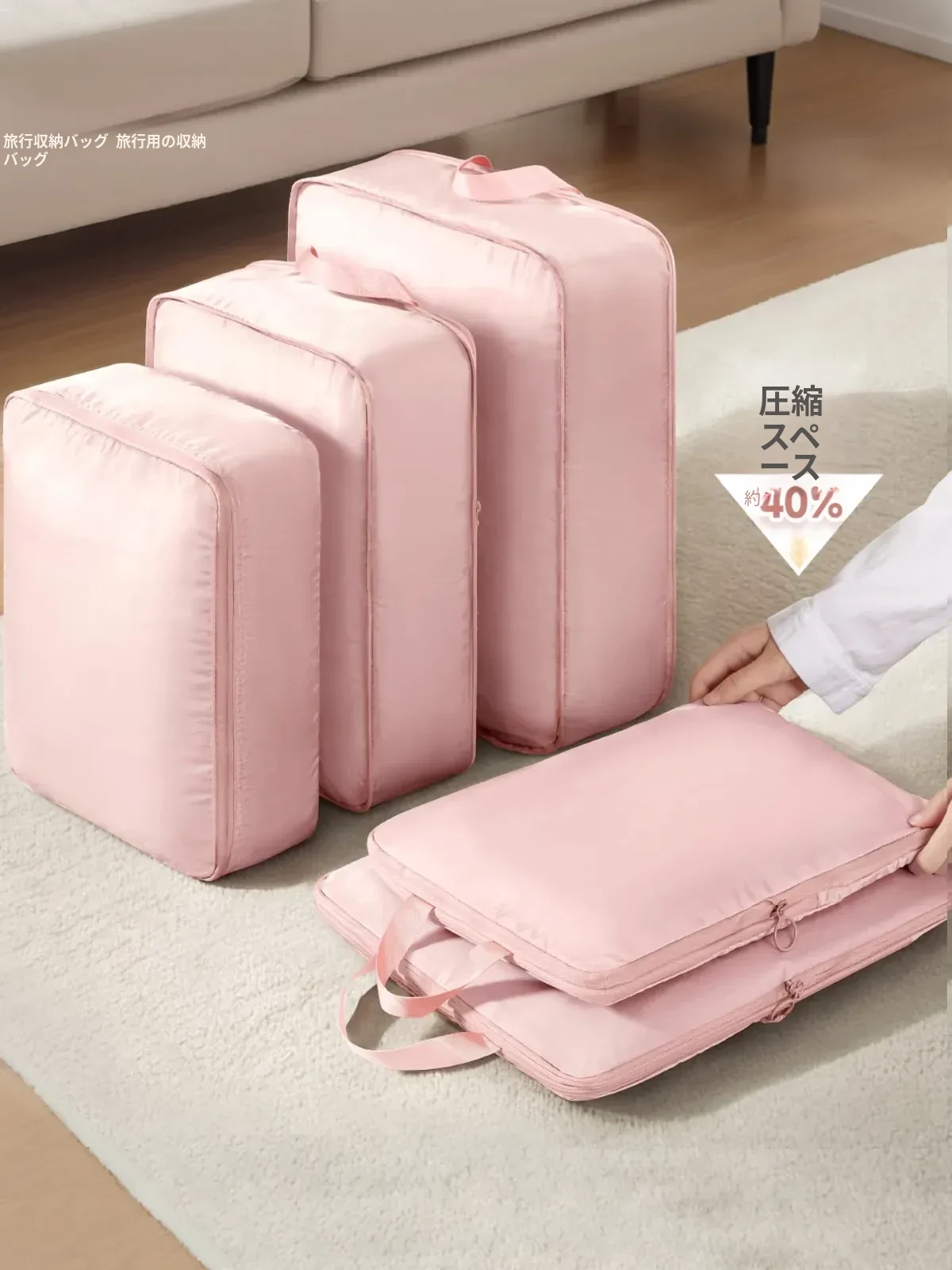 ダウンジャケット収納袋・家庭用衣服圧縮袋・旅行用スーツケース整理専用袋・4点セット収納マジック!すっきり収納でスペースを有効活用し、旅行も快適に!