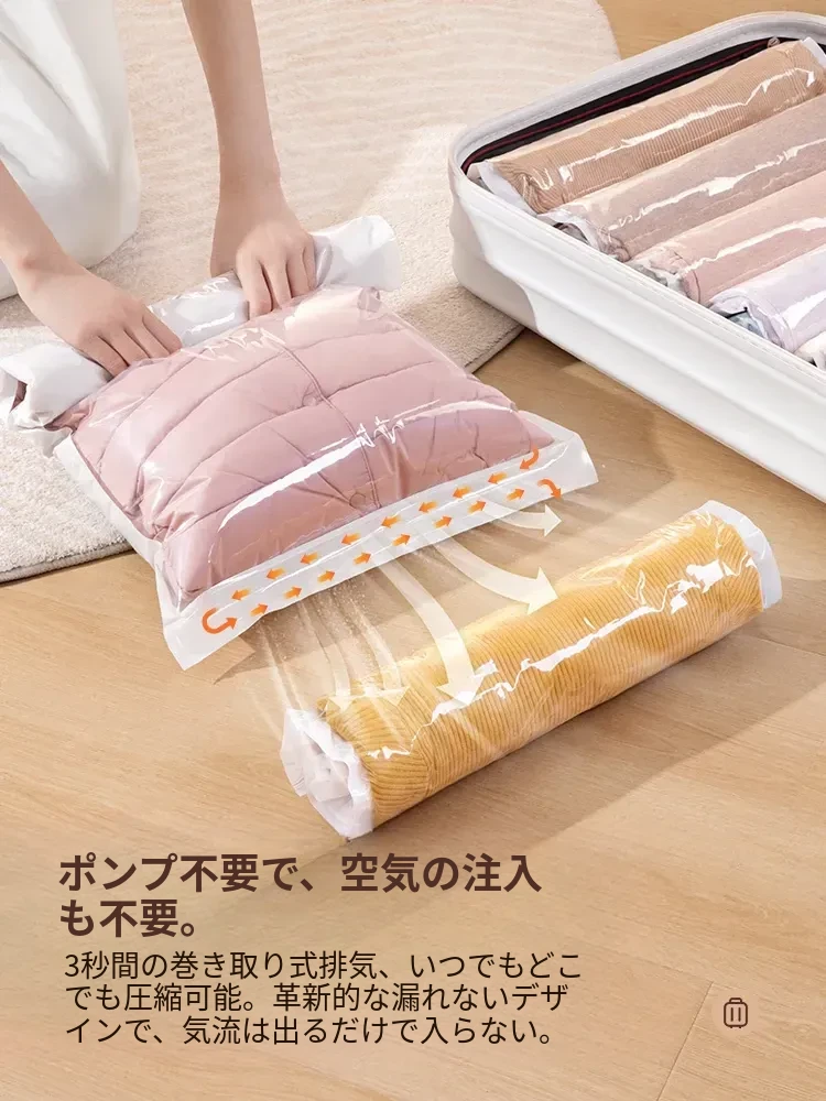 旅行用真空圧縮バッグ - スーツケース専用、衣類やダウンジャケットも楽々収納!空気抜き不要の手巻きタイプで、スッキリ整理整頓。持ち運びも簡単、快適な旅をサポートします!