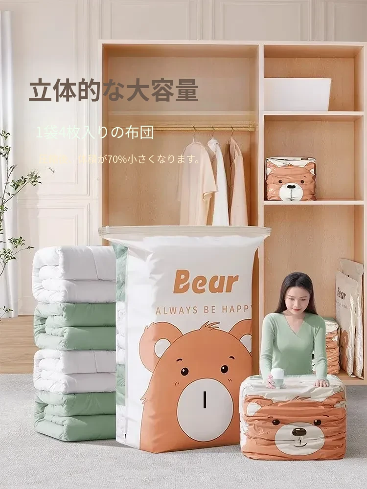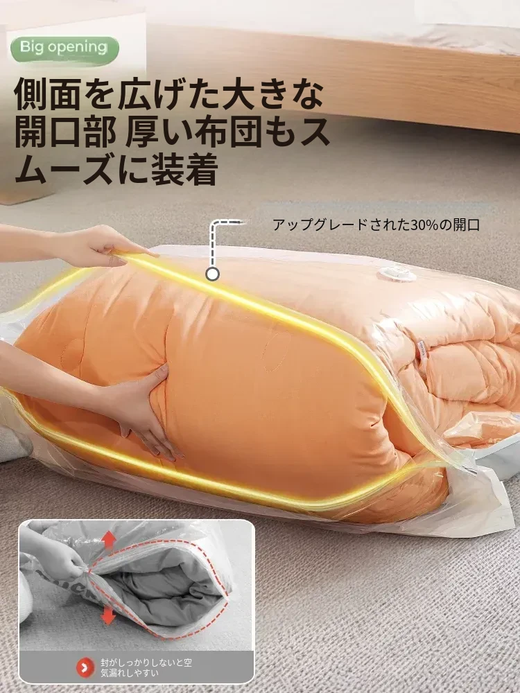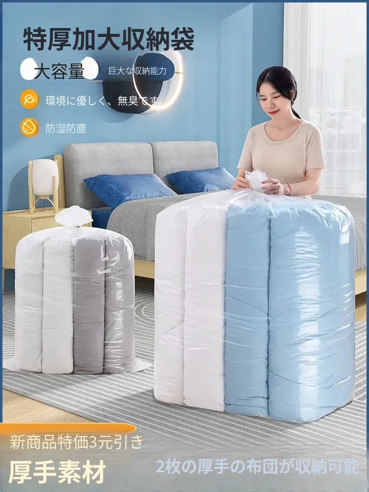 真空圧縮袋 - ふんわりとした布団や衣類をコンパクトに収納!旅行や日常に便利な厚手収納袋。羽毛服や衣類をすっきり整理して、スペースを有効活用!