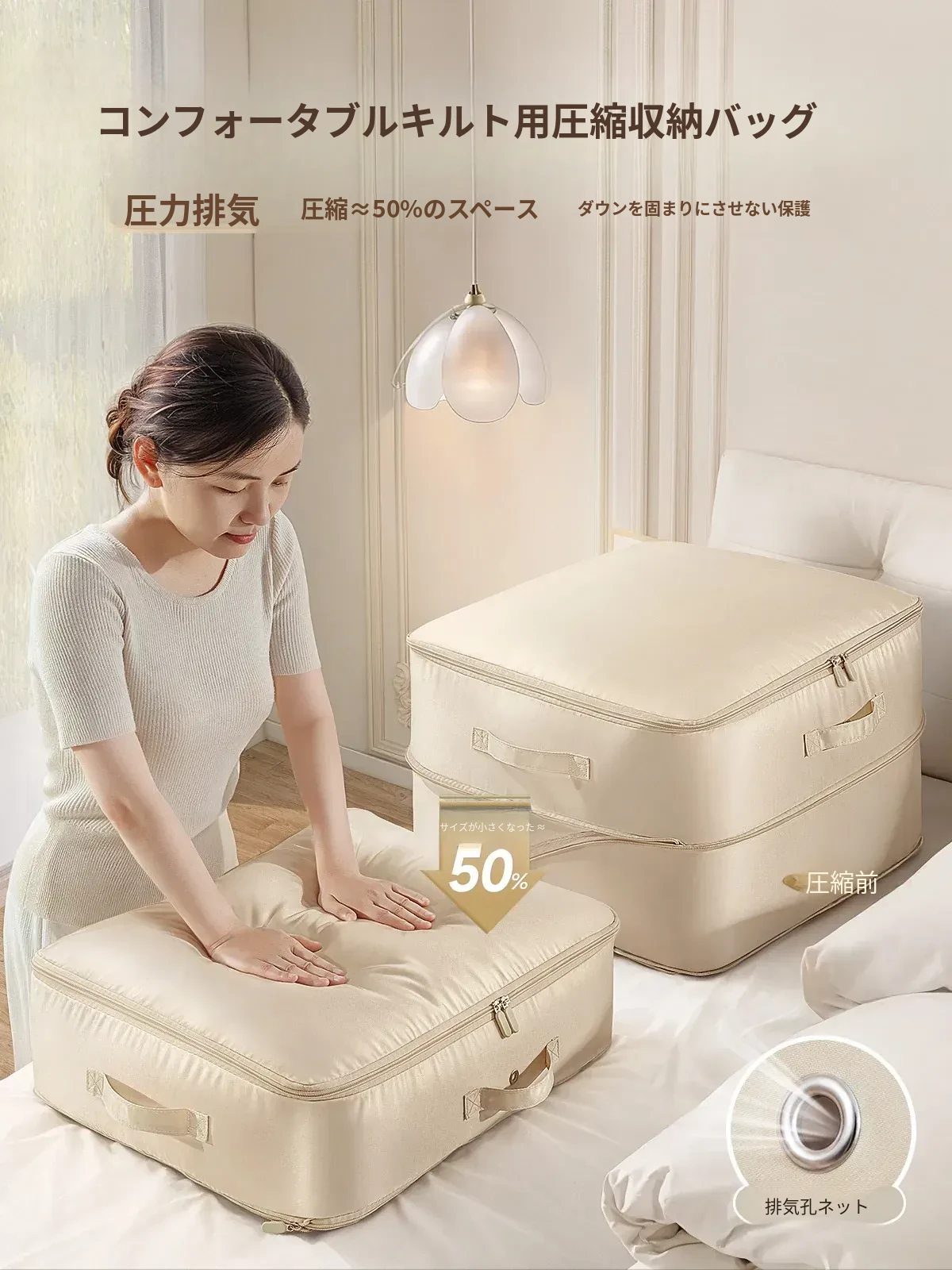 日本旅行に最適!衣類やダウンジャケットをコンパクトに整理できる圧縮収納袋。出張や旅行に便利な分けて収納できるバッグで、スーツケースのスペースを有効活用!