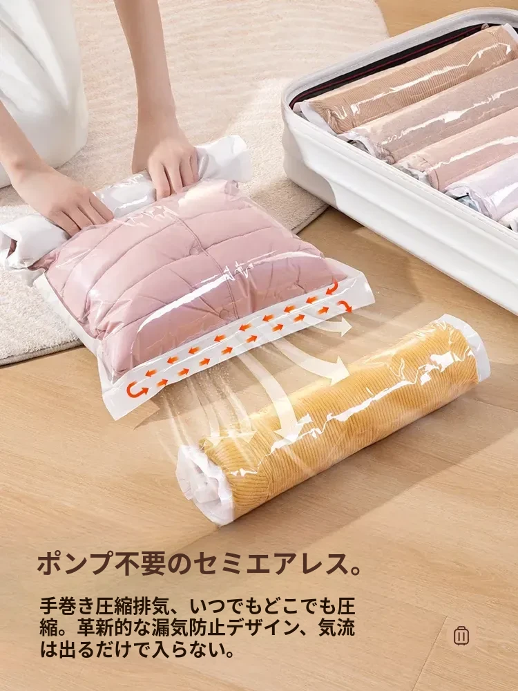 圧縮真空収納袋|ダウンジャケットや衣類に最適!旅行整理の必需品!布団もすっきり収納!空気を抜いて立体的に保管、スペースを節約!