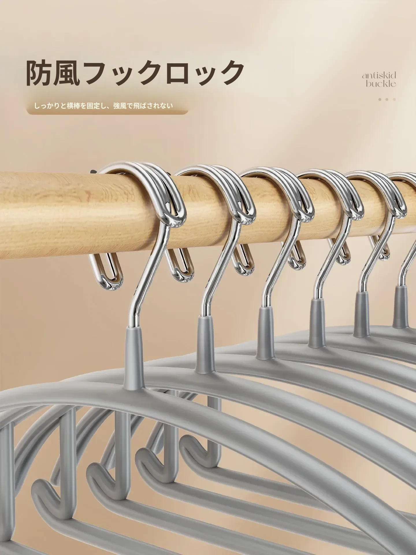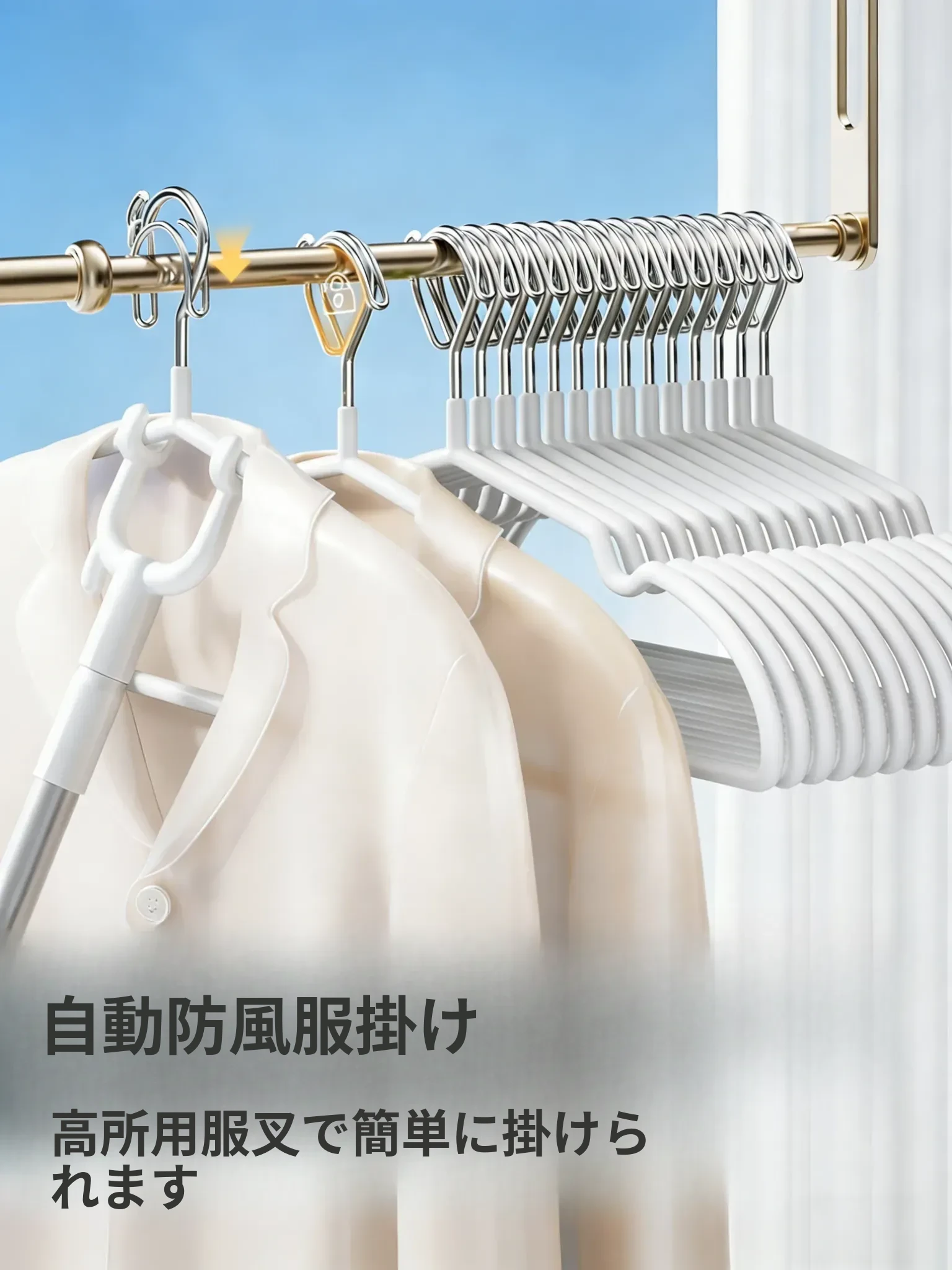 風を防ぐ衣類ハンガー!家庭用バルコニーでの洗濯に最適、太めで滑らないデザイン。痕を残さず、落下防止の自動クリップ付き。学生寮でも大活躍の便利アイテム!
