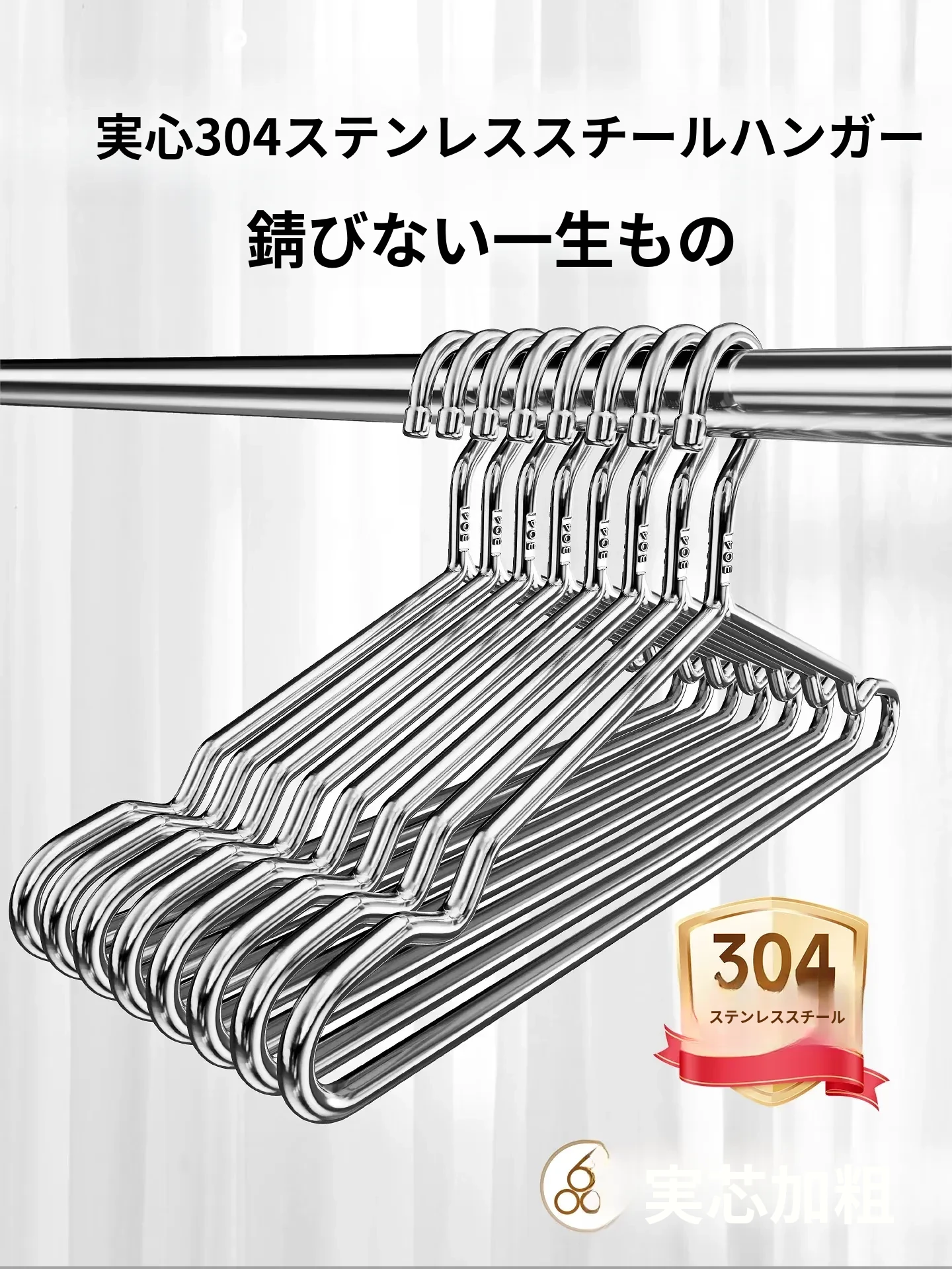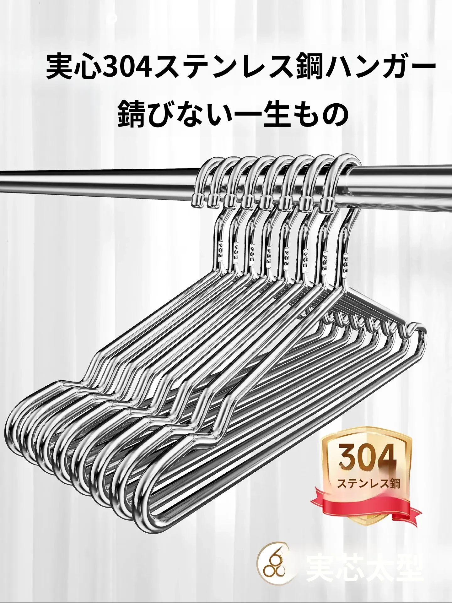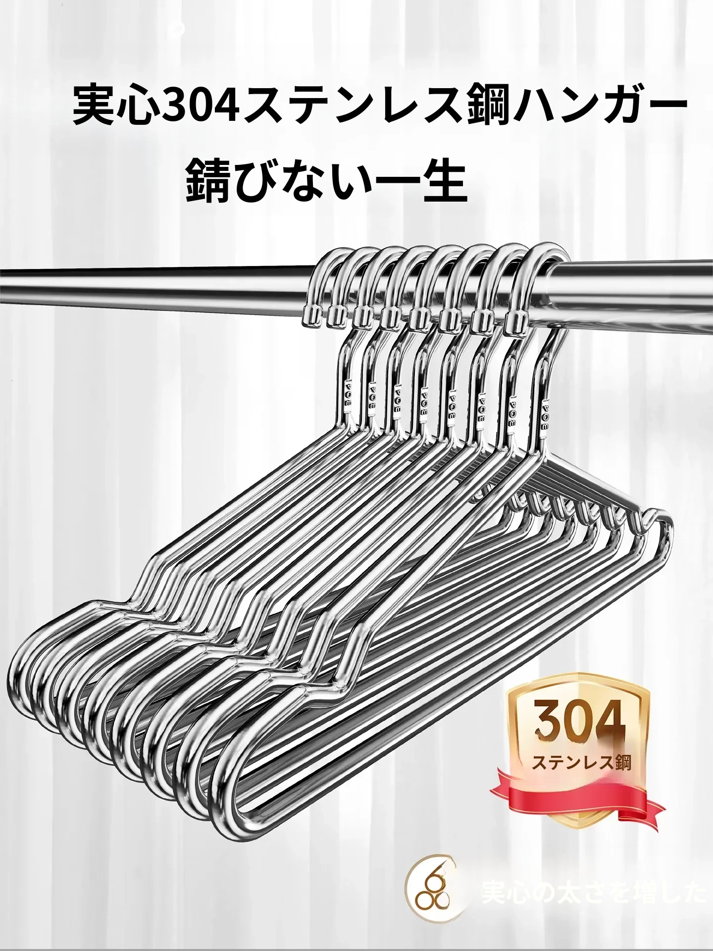 304ステンレス製の頑丈なハンガー!脱落防止設計で、家庭や学生寮でも安心して使用可能。太くて厚い構造で、あなたの衣類をしっかり支えます。