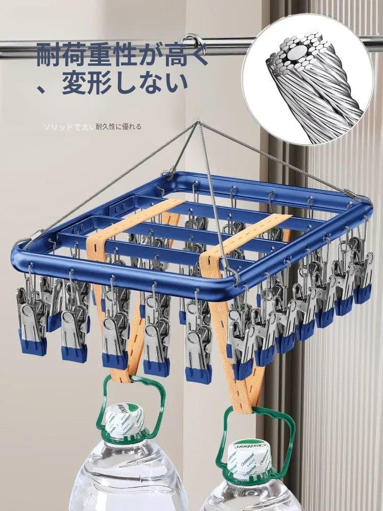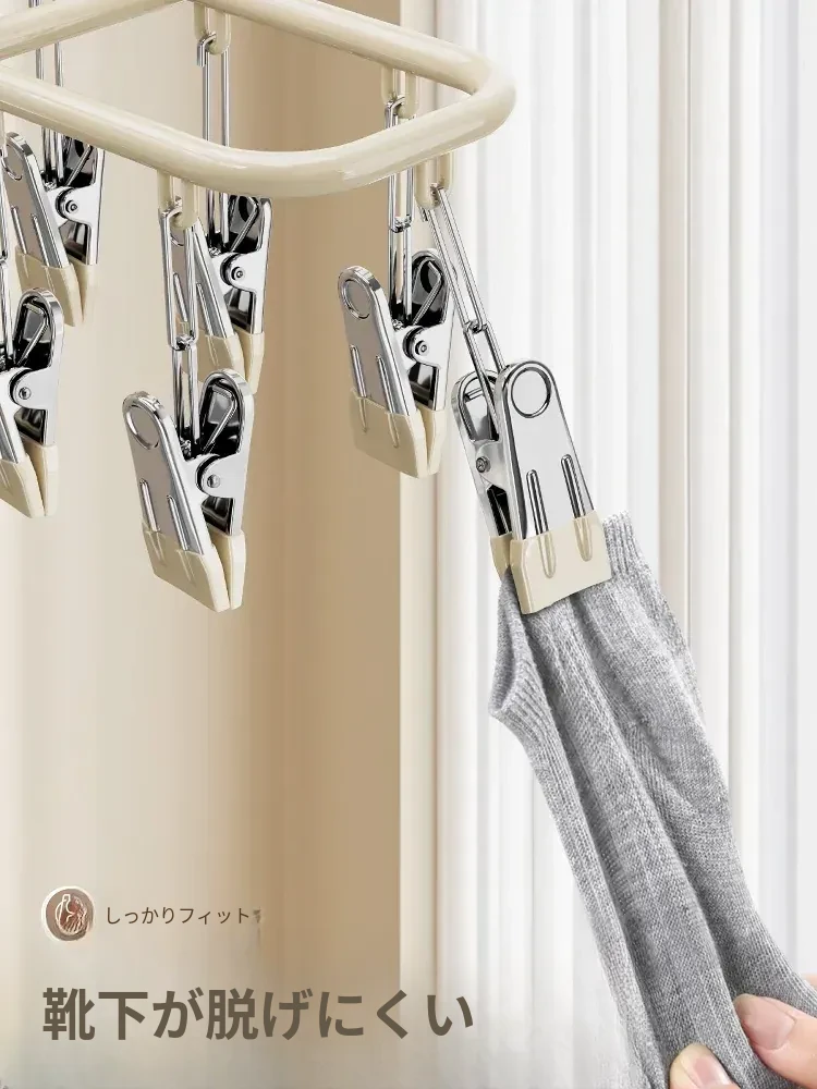 ステンレス製靴下干しラック 多機能クリップ付き 家庭用 無痕インナー・パンツ・涼しい衣類干し バルコニー用 風に強い便利アイテム!