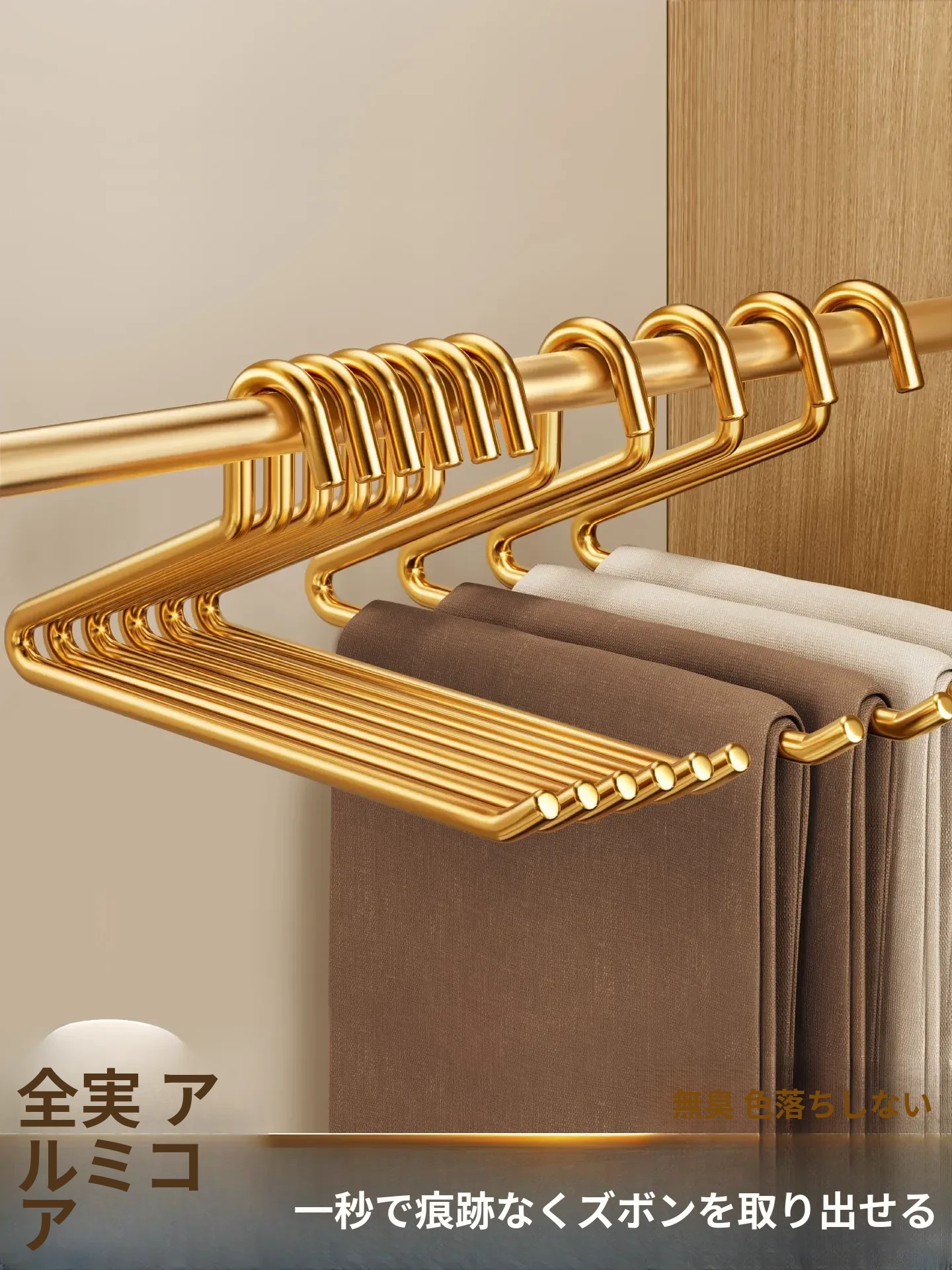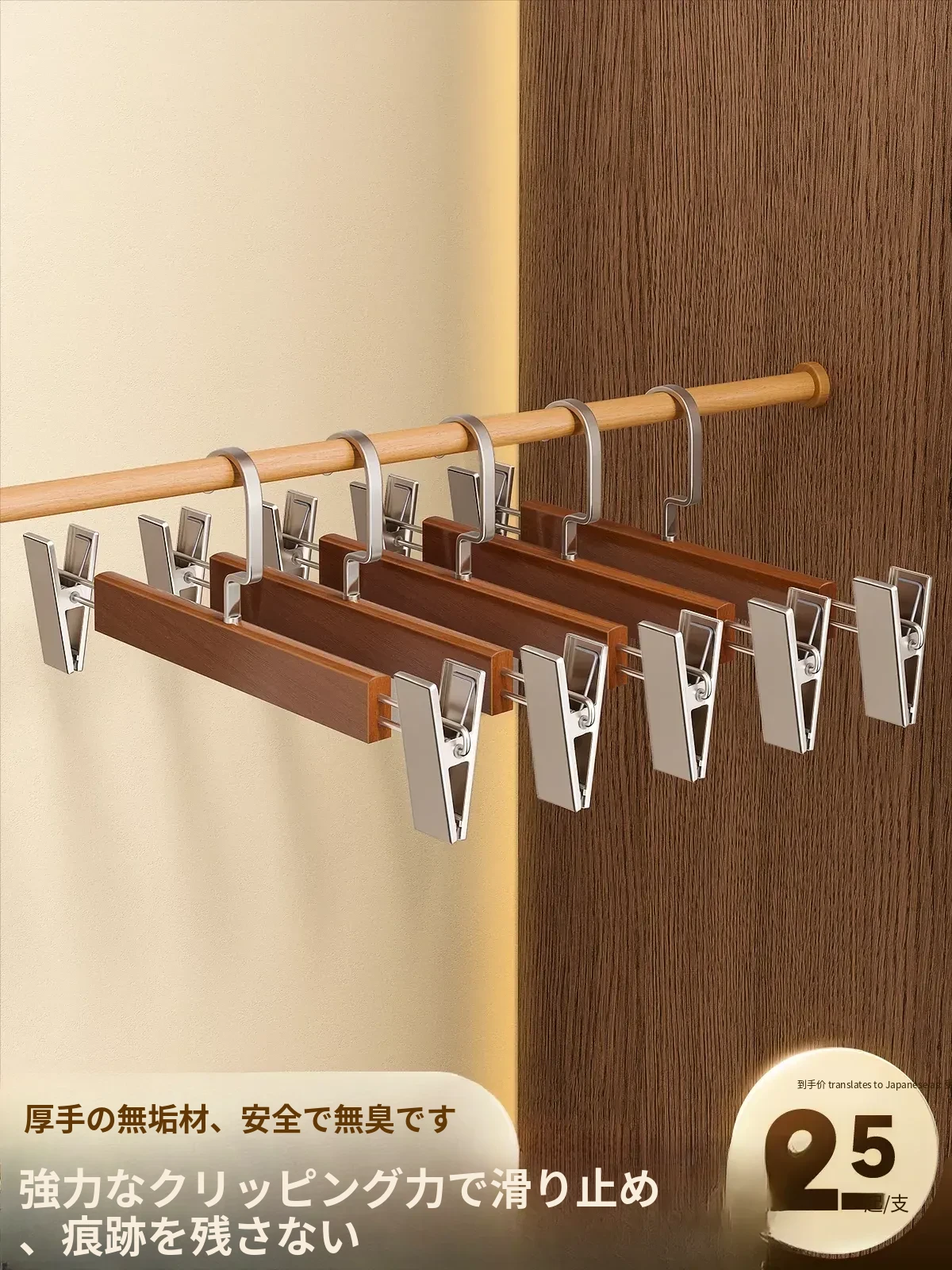 無痕衣類収納!木製パンツハンガー - 家庭用・スカートも簡単整理!クローゼットや服屋に最適、すっきりとした収納空間を実現する魔法のアイテム!
