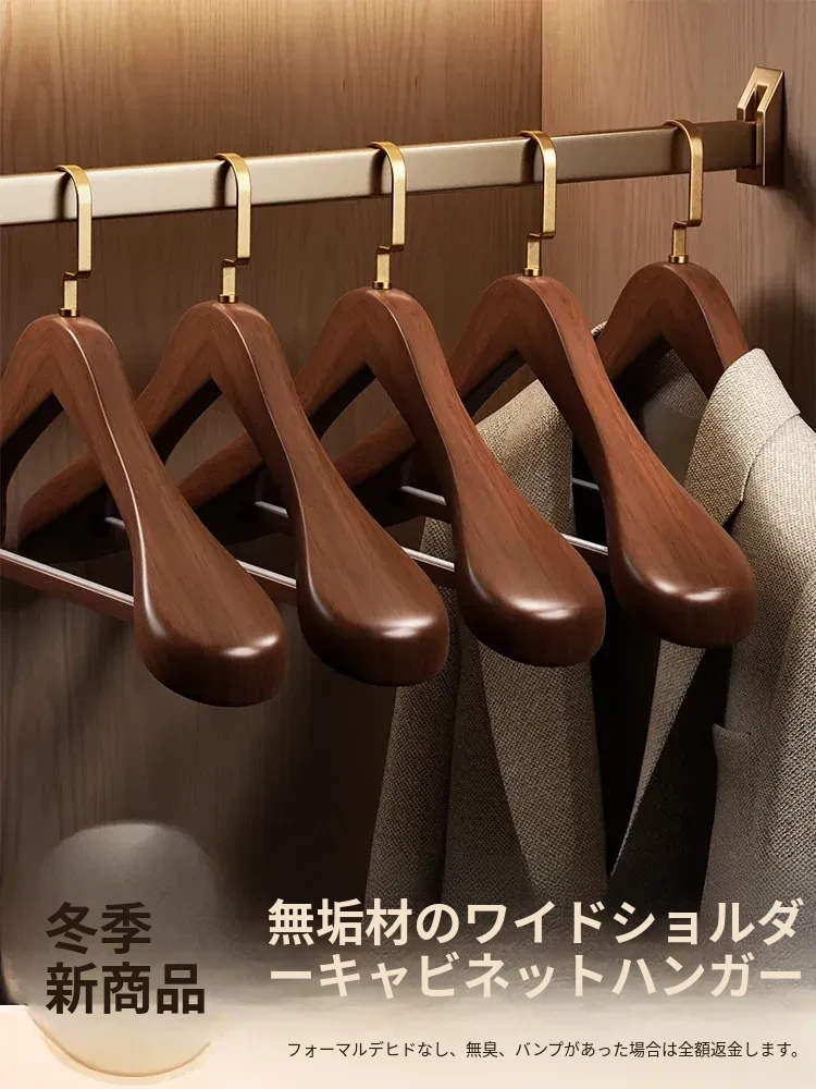 肩幅広めの高級無垢材ハンガー - 大衣やスーツに最適!肩のラインを守り、シワを防ぐ無痕デザイン。おしゃれなインテリアにもぴったりな、耐久性抜群の木製ハンガーです。