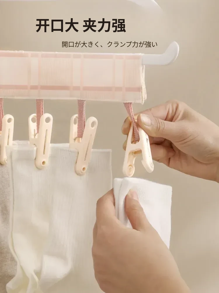 日本旅行に最適!コンパクトな衣類ハンガー 下着や靴下も楽々干せる!出張や観光に便利な多機能クリップ付きハンガー。ホテルでも使える、洗濯物干しの必需品!