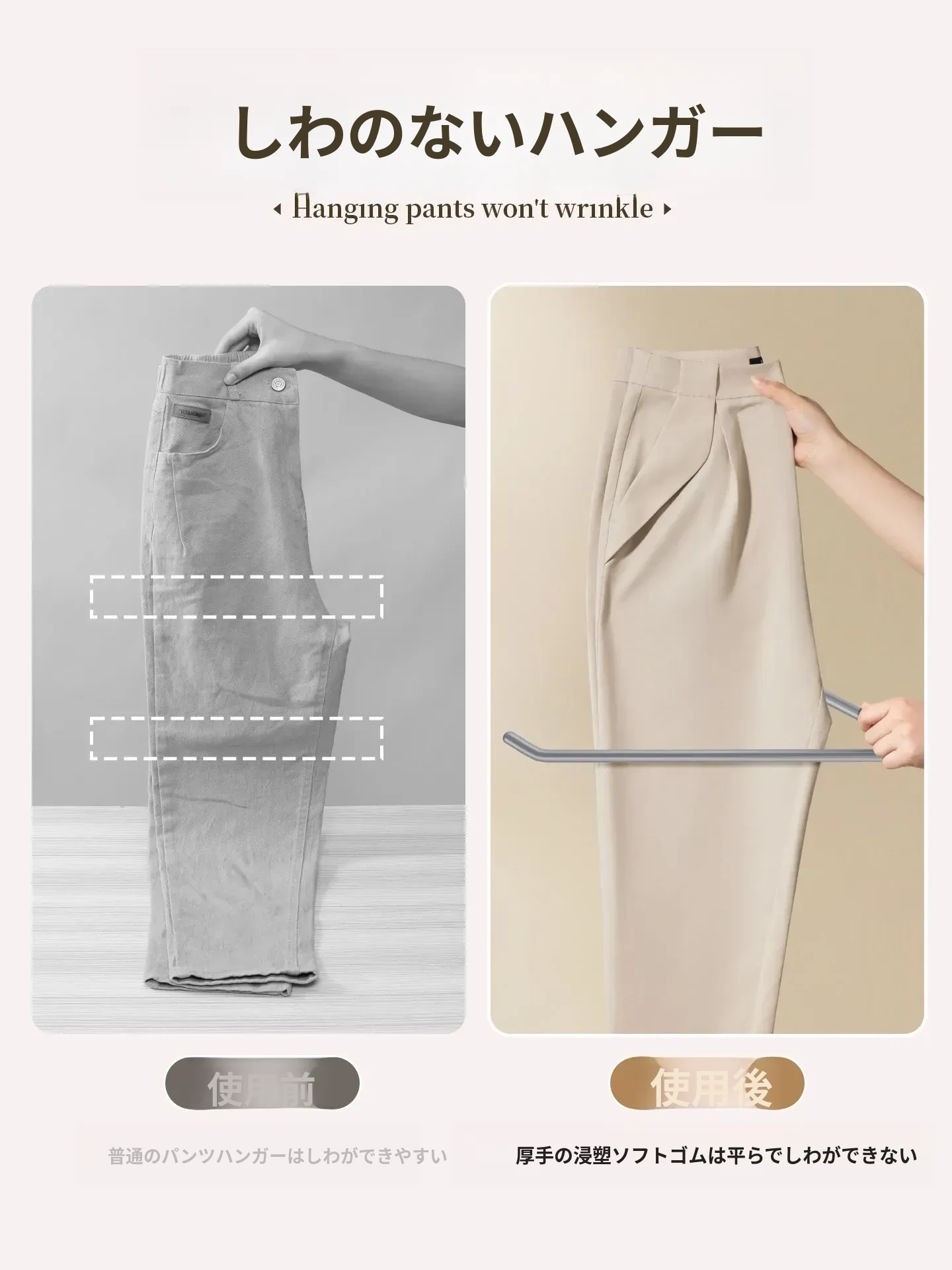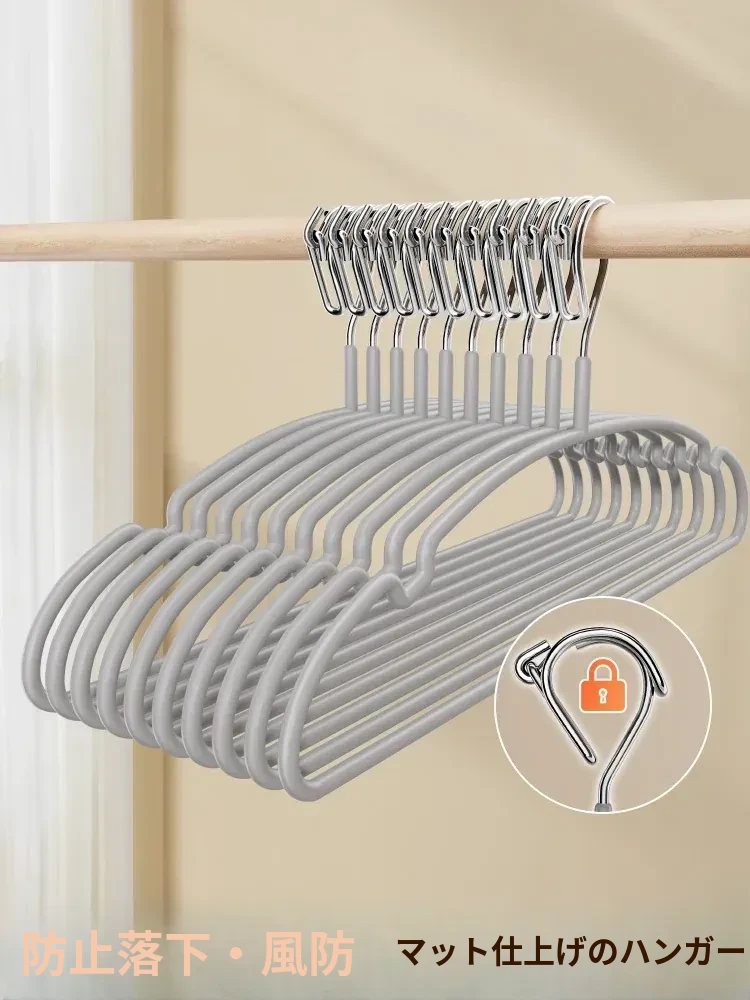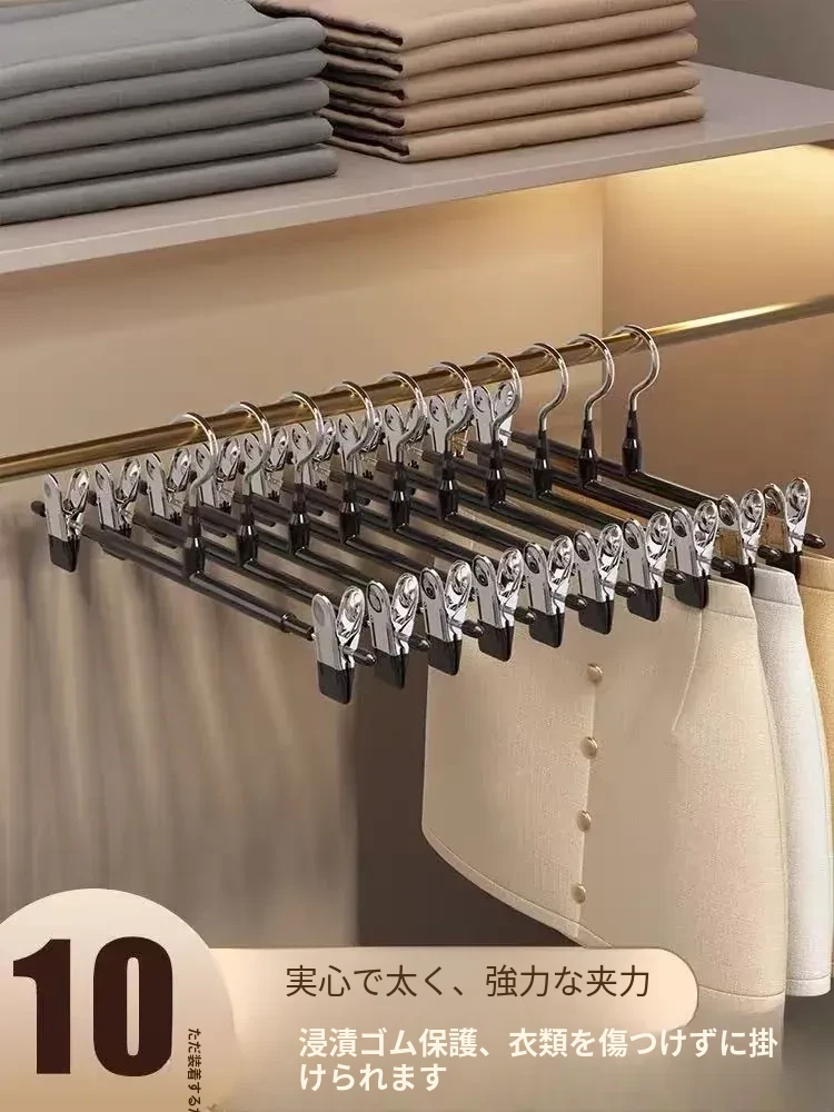 学生寮に最適!無痕のパンツクリップ付きハンガー - 強力な滑り止めでスカートも安心して干せるステンレス製パンツハンガー!シンプルでおしゃれな収納を実現!
