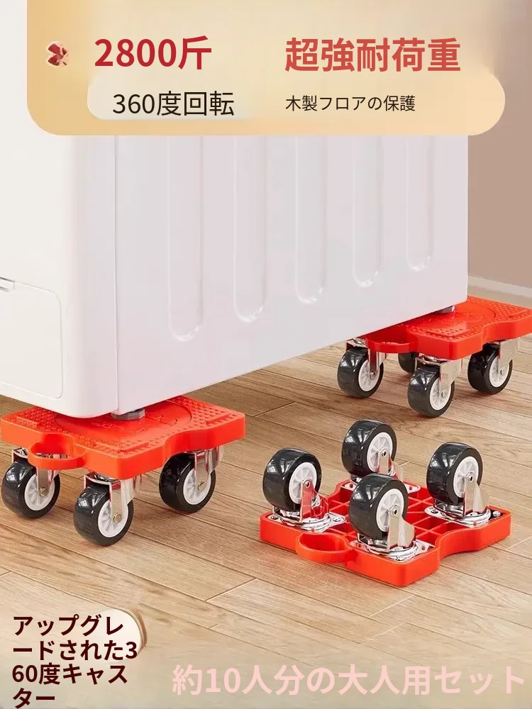 重い物をラクラク移動!家具・冷蔵庫に最適な万能キャスター付き移動器具 - 引越しや部屋の模様替えも簡単に!ベッドやタンスもスムーズに移動可能!