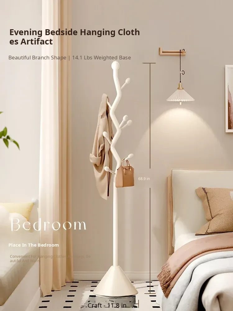 Versatile Floor-Standing Clothes Rack for Bedroom and Living Room - Space-Saving Garment Hanger and Stylish Hat Stand, Perfect for Bedside Use and Small Spaces