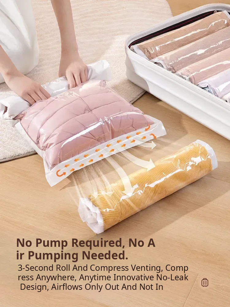 Travel Vacuum Compression Bags for Suitcases - No Pump Needed, Hand-Roll Storage for Clothes, Jackets, and Down Jackets - Ideal for Efficient Packing and Space-Saving Travel