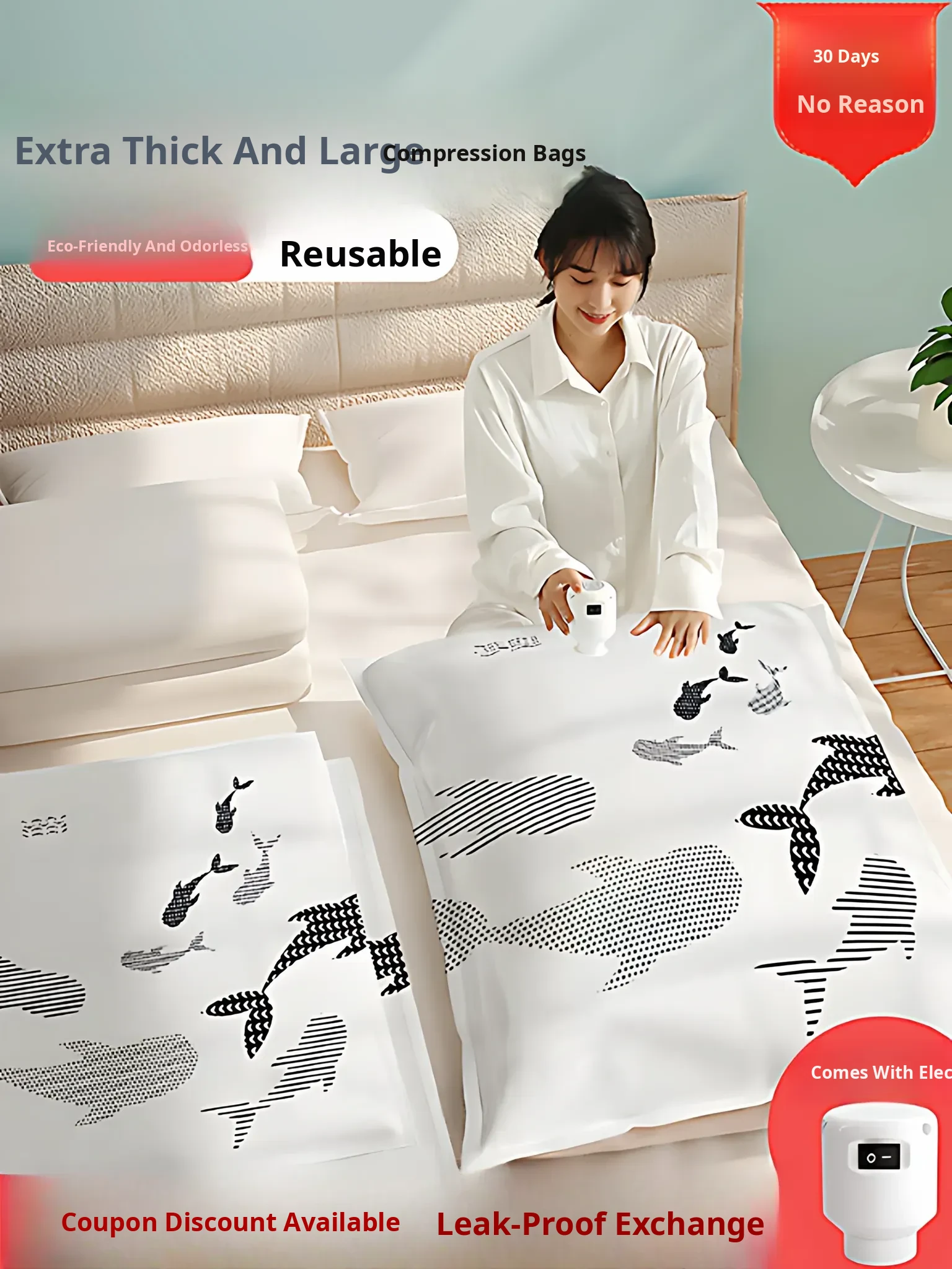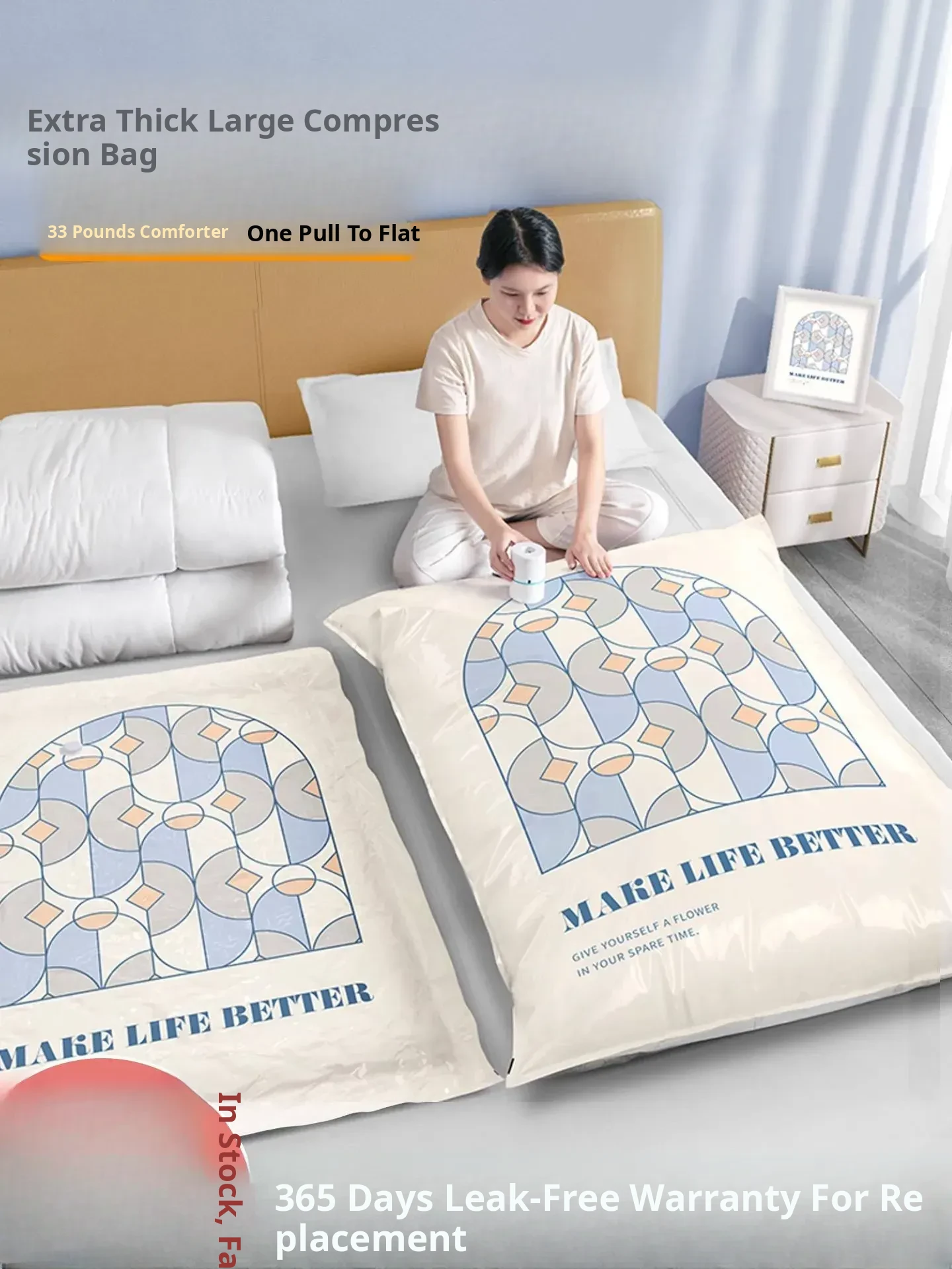 Vacuum Compression Bags for Bedding, Clothes, and Down Jackets - Space-Saving Storage Solution for Home Organization