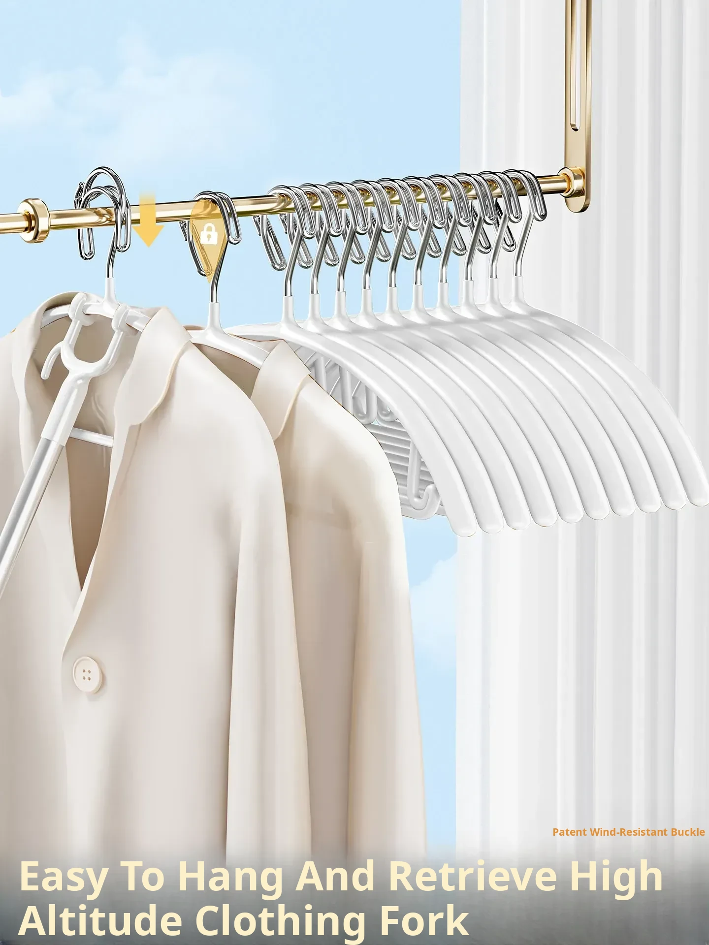 **Windproof Clothes Hanger with Automatic Clips - No Trace, Anti-Slip Design for Home Use, Perfect for Balconies to Prevent Clothes from Blowing Away or Falling Off**