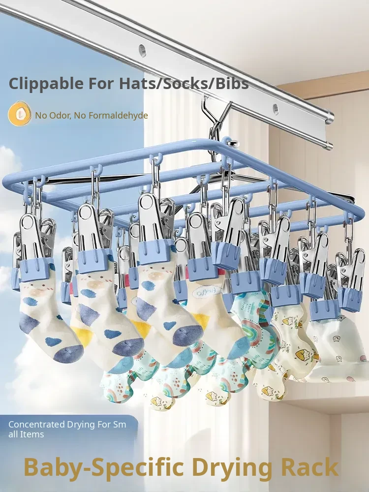 Stainless Steel Baby Hangers with No Marks and Non-Slip Design - Perfect for Home Use, Ideal for Hanging Baby Clothes and Socks - Multi-Clip Drying Solution for Your Little One!