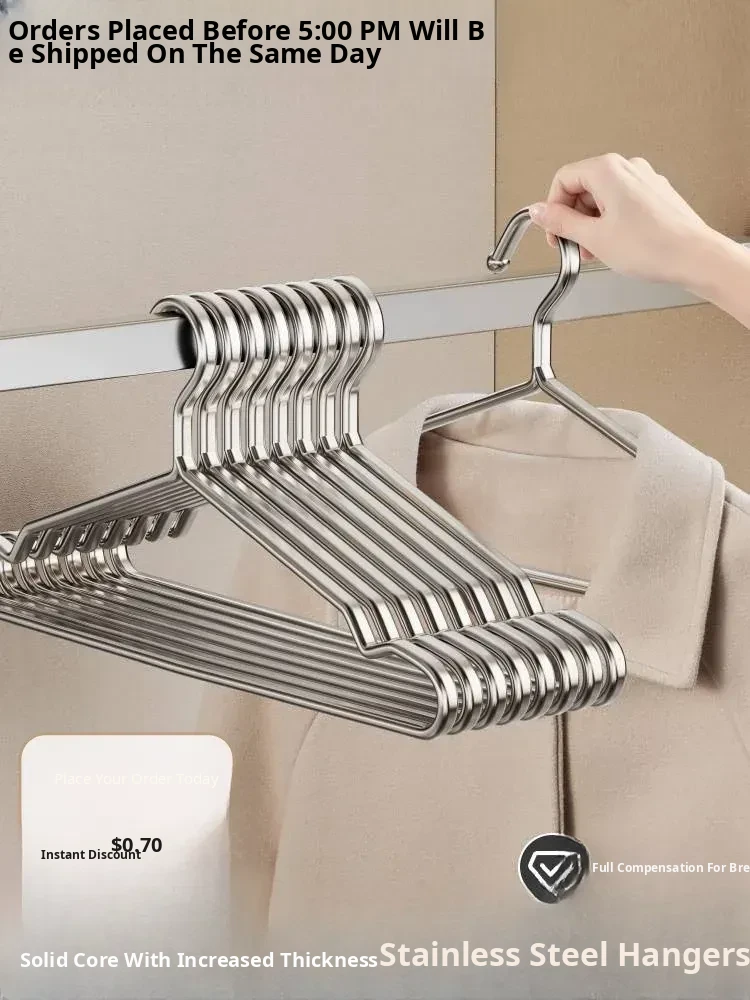 Stainless Steel Clothes Hangers for Dorms - Heavy-Duty Solid Design, No Marks, Thickened Metal Drying Rack, 304 Grade for Durable Use
