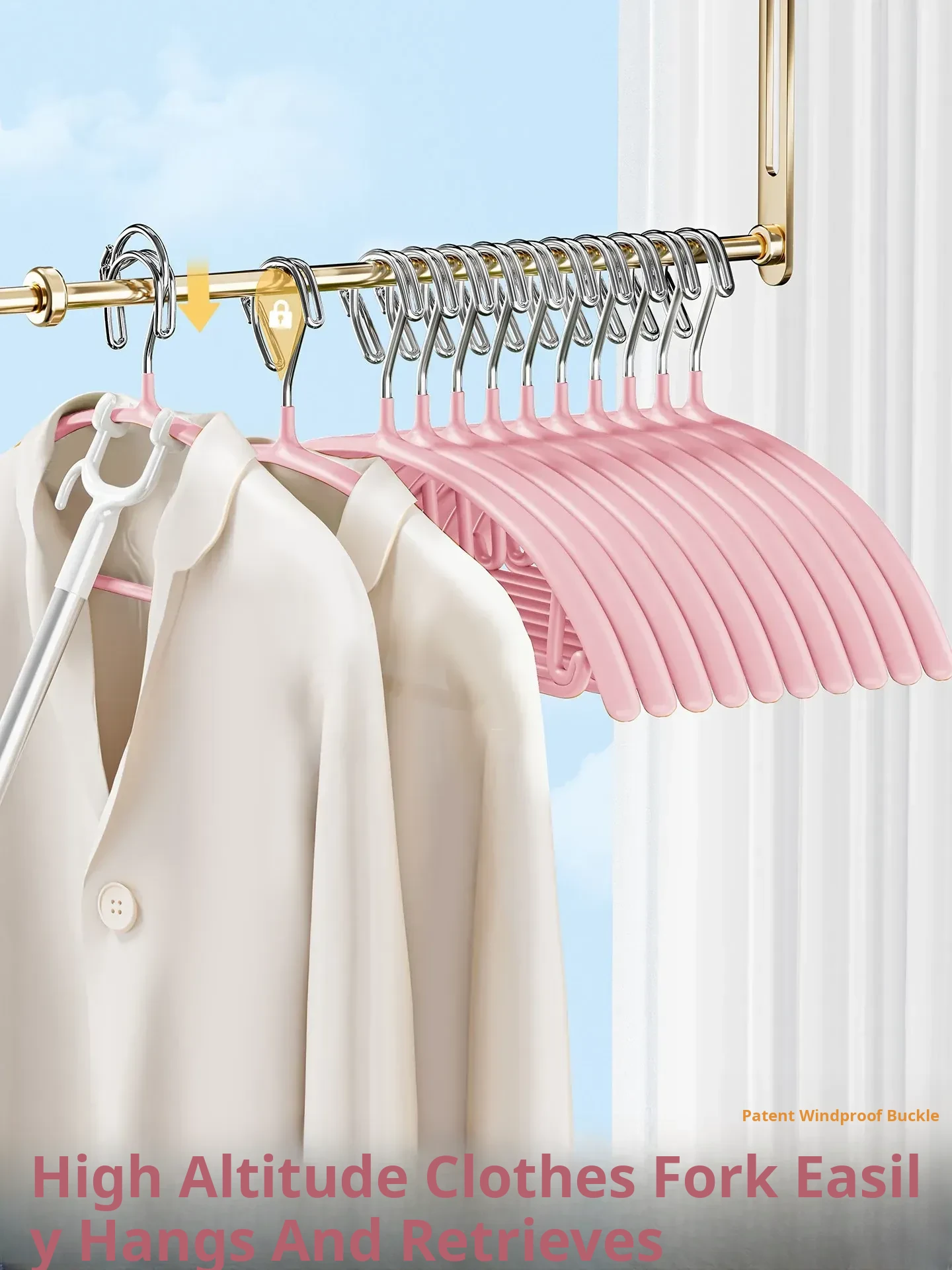 Windproof Clothes Drying Rack with Automatic Locking Clips - Anti-Fall Design for Outdoor and Home Use, Ideal for Balconies and High Spaces, Sturdy Thick Iron Frame