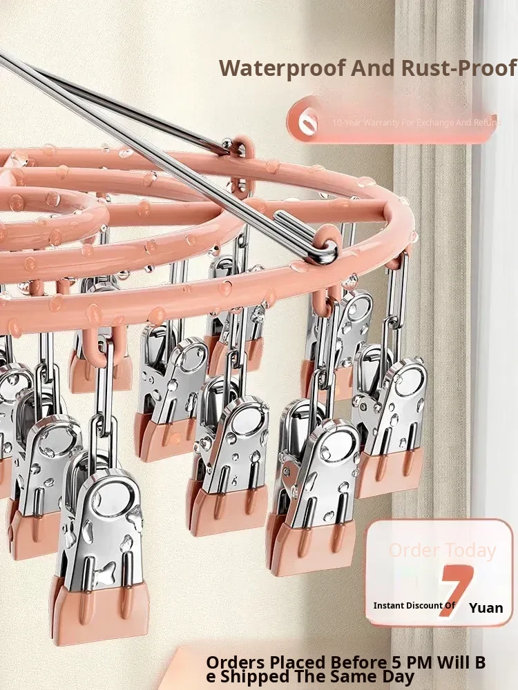 Stainless Steel Sock Drying Rack with Multiple Clips - No Trace Indoor Clothes Hanger for Underwear and Light Garments, Versatile Windproof Balcony Essential!