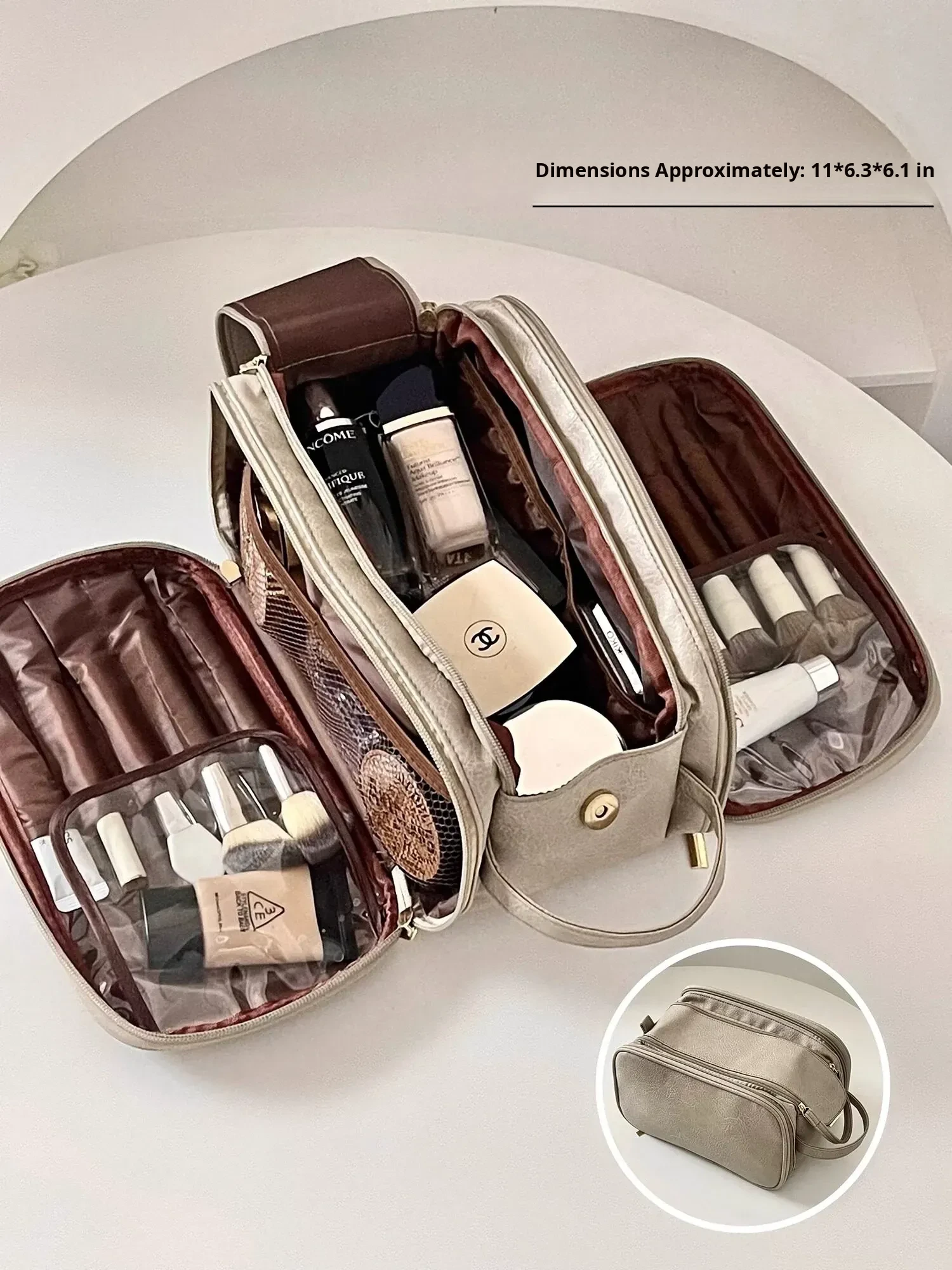 Camel Gray [Super Large Capacity, Three Compartments, Brown Interior]