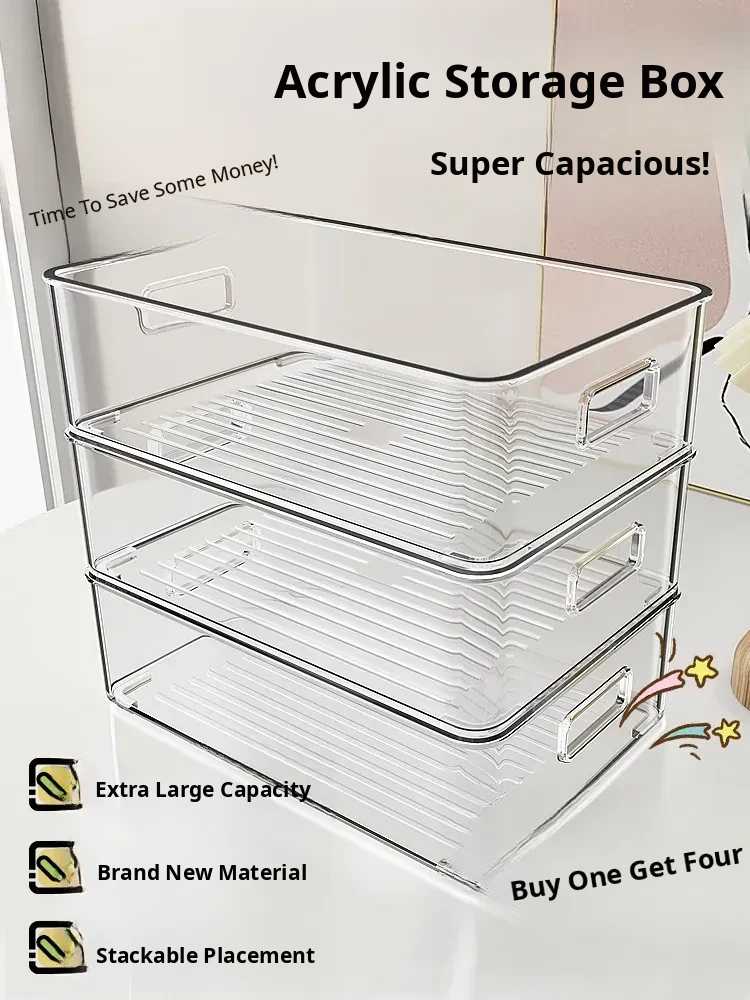 Clear Storage Box for Skincare, Kitchen Cabinets, Drawers, and Fridge - Acrylic Organizer for Snacks and Dorm Room Essentials - Keep Your Space Tidy and Stylish!