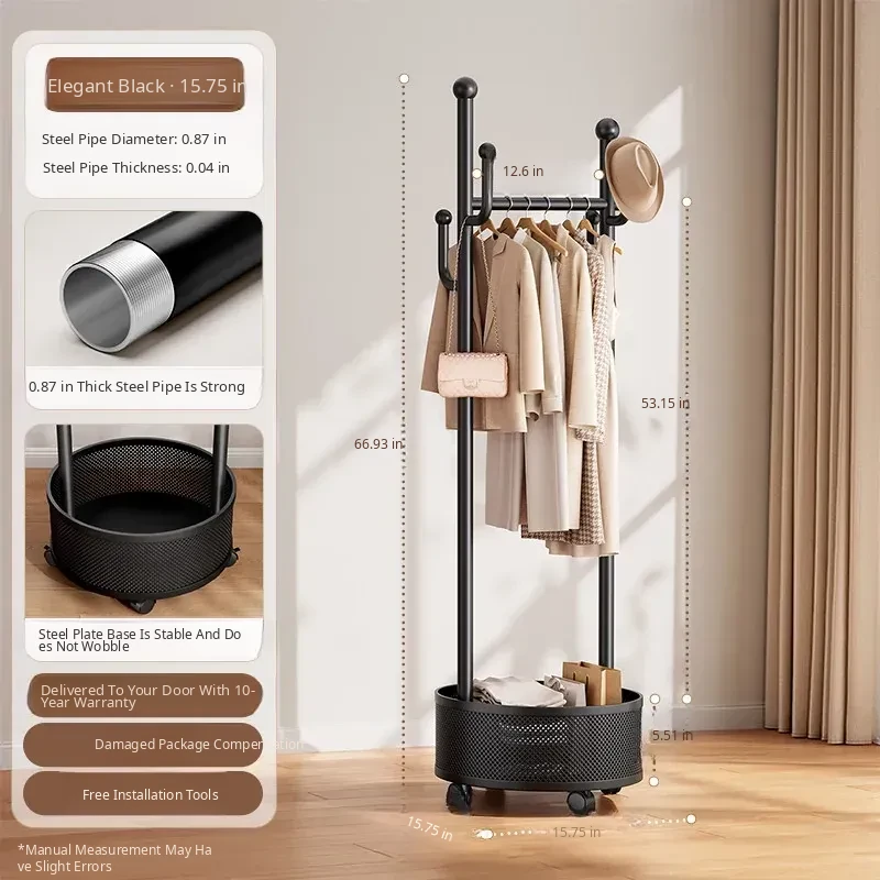 Compact Floor-standing Coat Rack for Bedroom - Stylish Metal Organizer for Coats, Bags, and Accessories - Portable Entryway Storage Solution