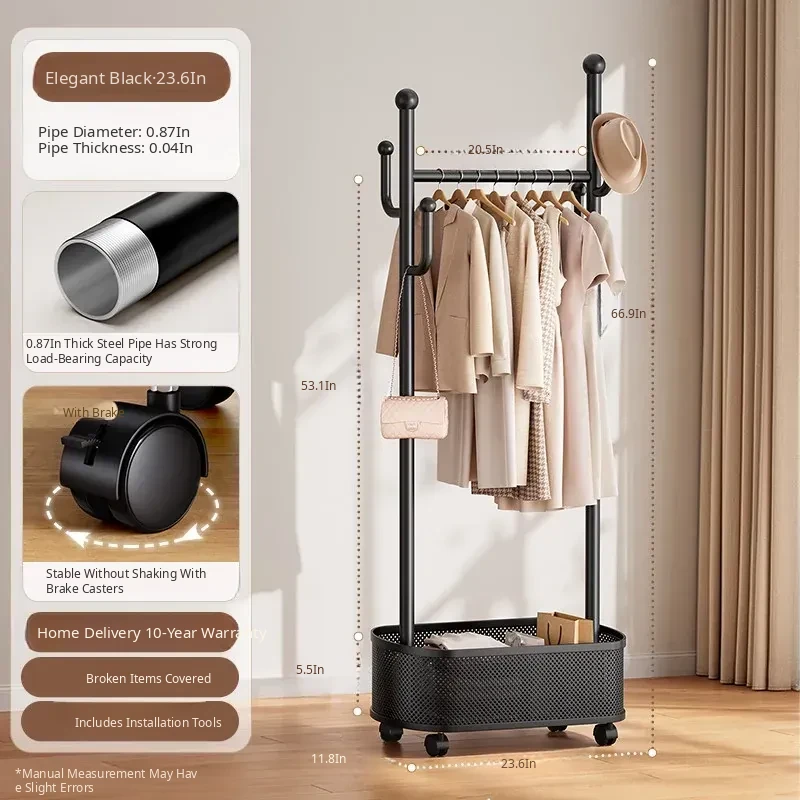 Elegant Black ⭐ 23.62in Wide [Thick 0.98in Steel Pipe + Silent Wheel]