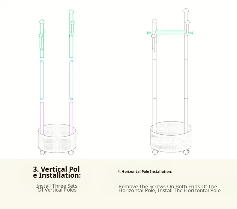 Milky White⭐23.62in Wide [Thick 0.98in Steel Pipe + Silent Wheel]
