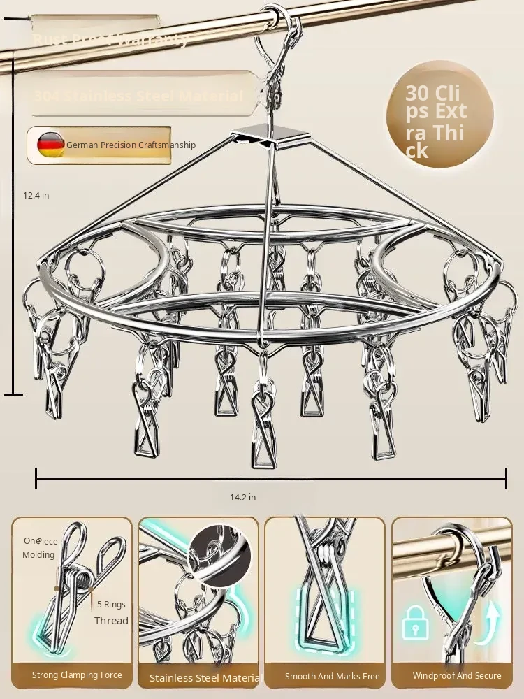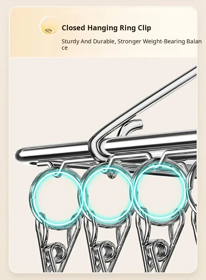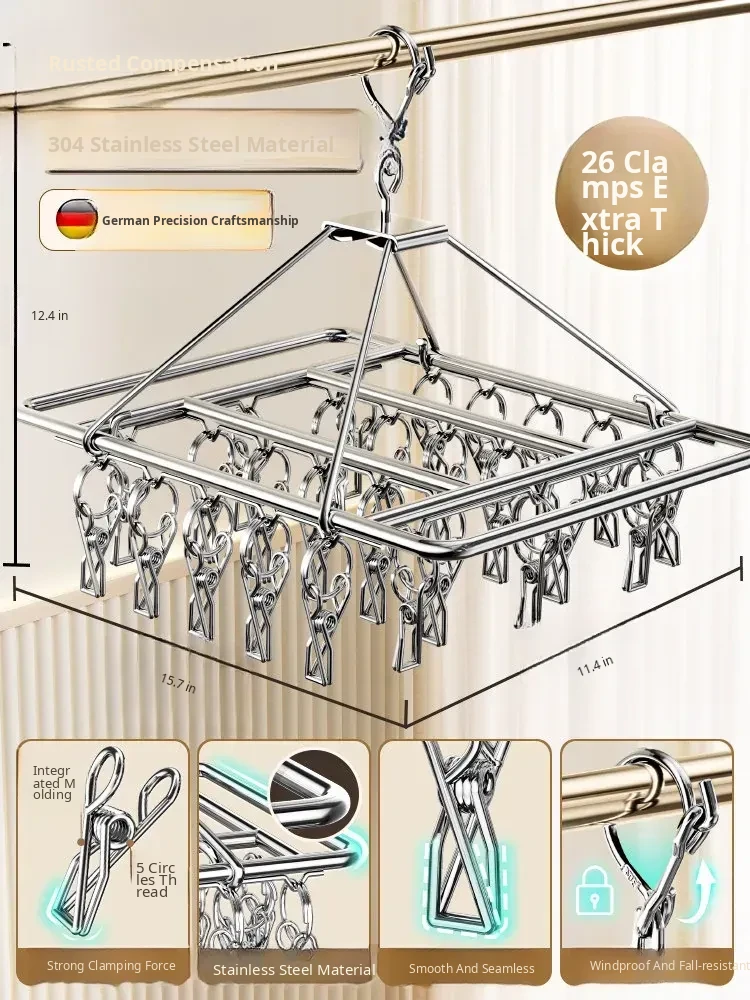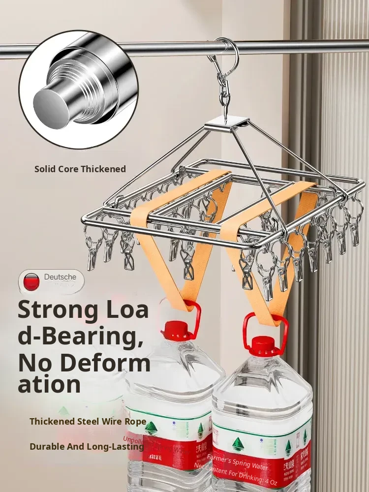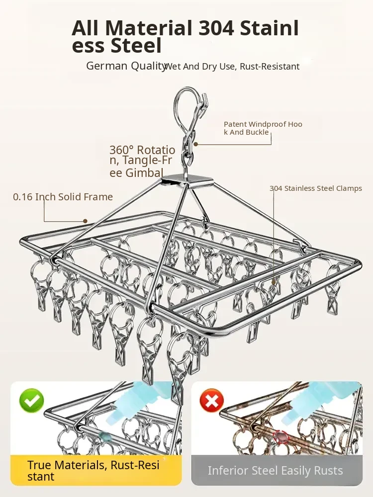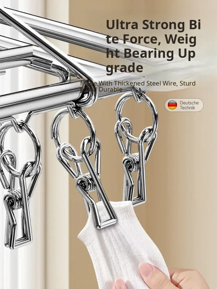 Durable 304 Stainless Steel Multi-Clip Drying Rack - Heavy-Duty, No Trace, Windproof, Home Use, Versatile Balcony Sock Dryer