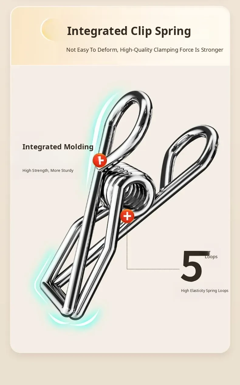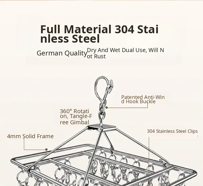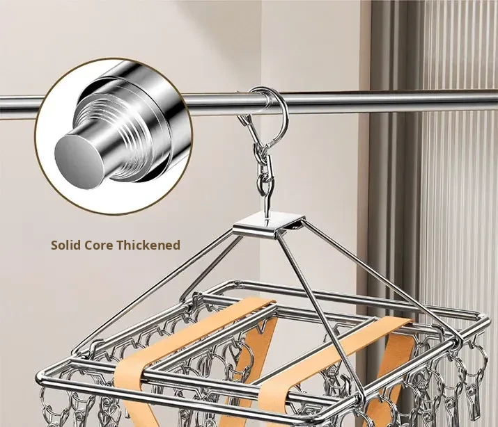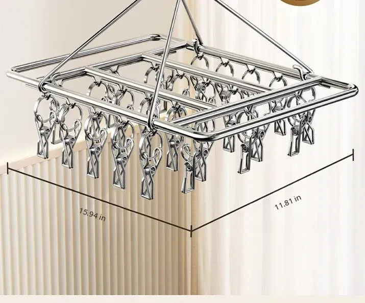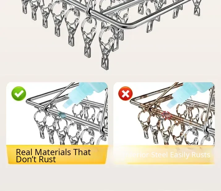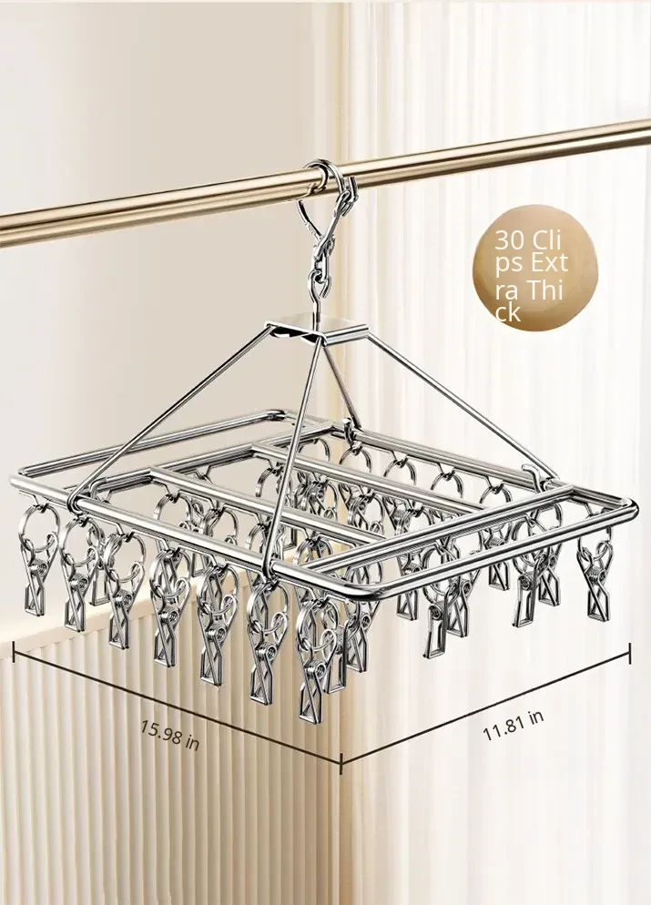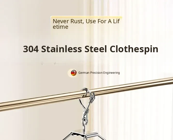 Durable 304 Stainless Steel Multi-Clip Drying Rack - Heavy-Duty, No Trace, Windproof, Home Use, Versatile Balcony Sock Dryer