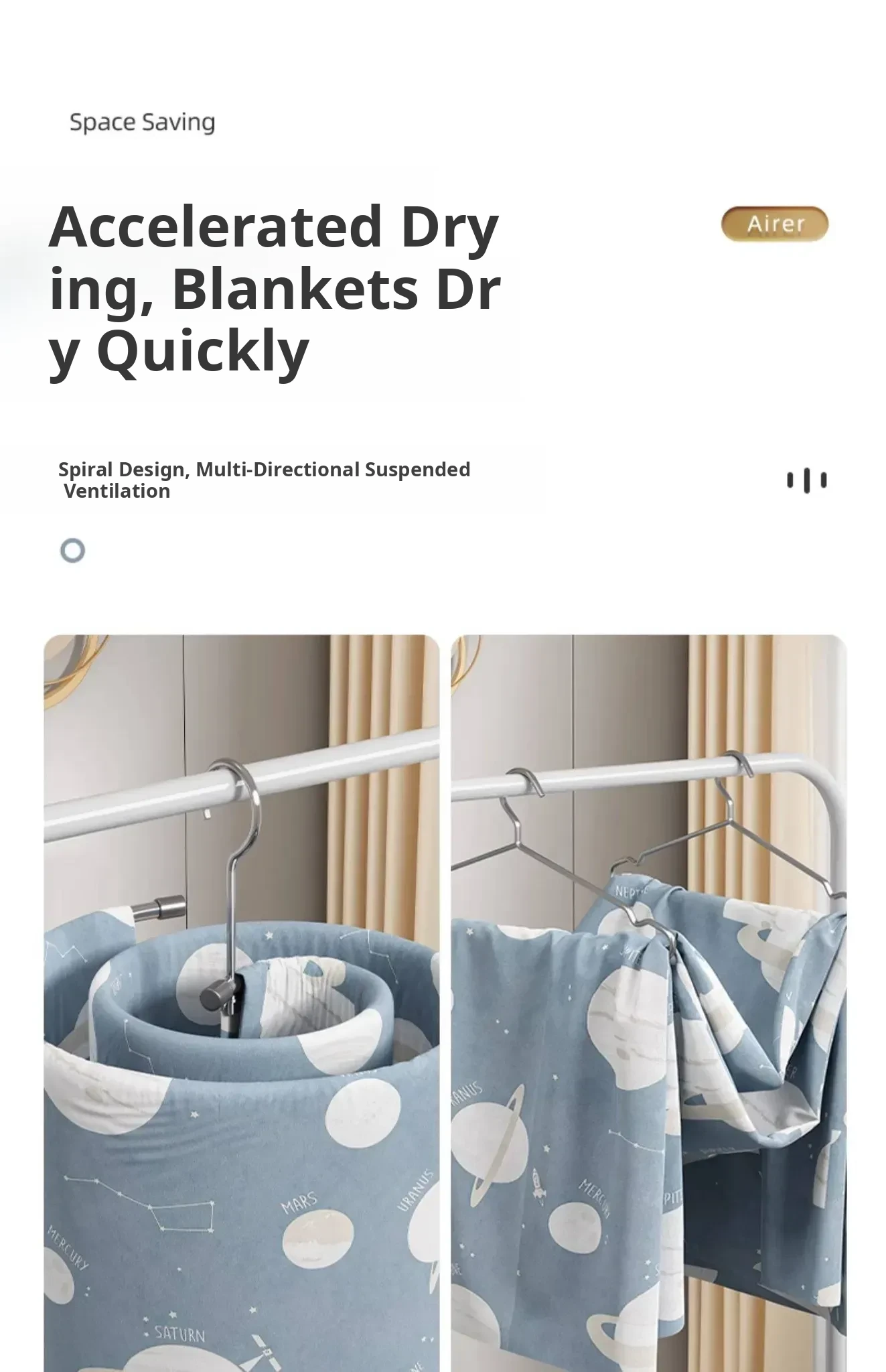 Japanese Stainless Steel Blanket Drying Rack - Spiral Design, Home Use Rotating Clothes Hanger for Bedding, Duvets, and Coats - Space-Saving and Efficient Drying Solution!