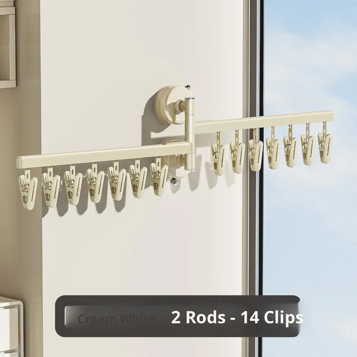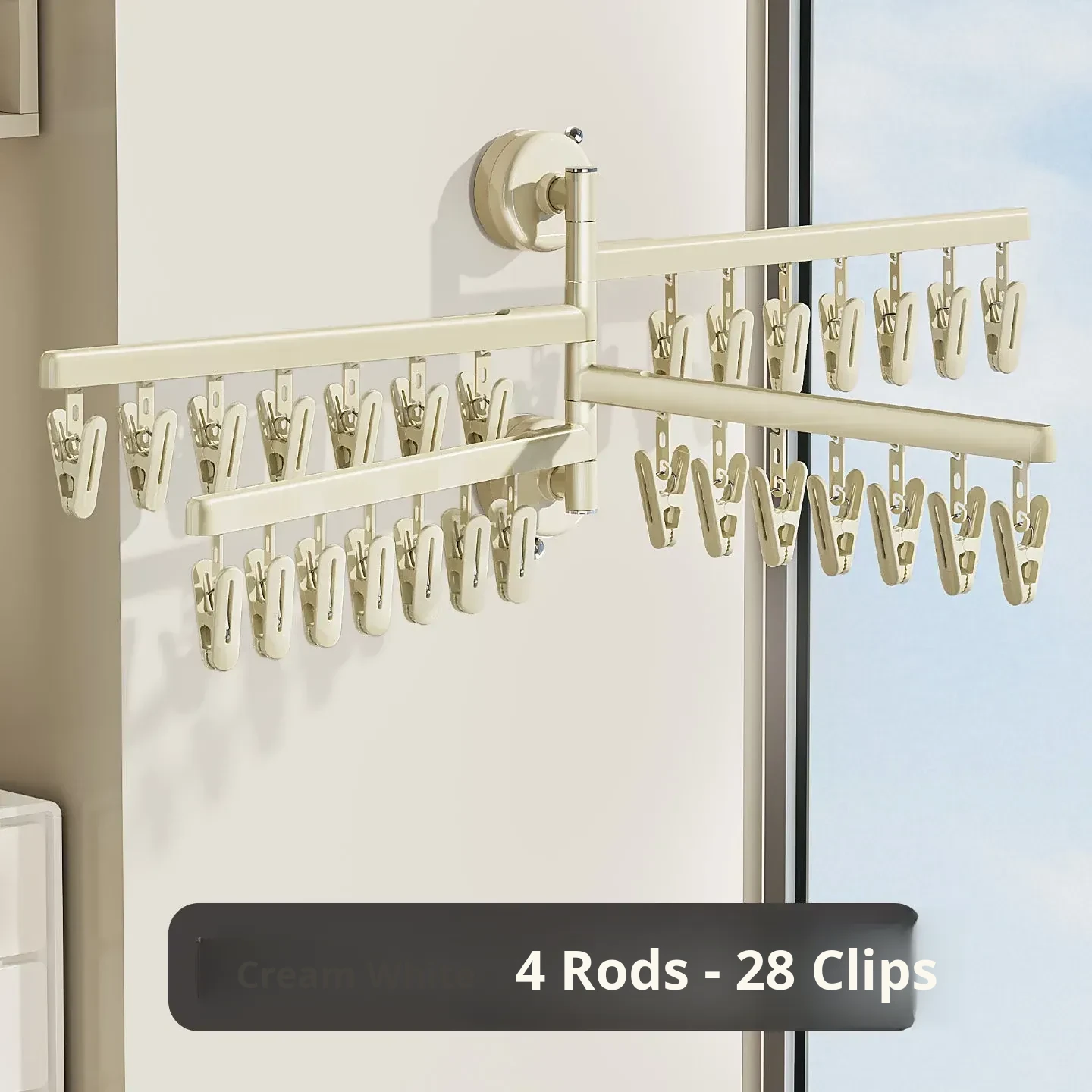 [Cream White] Four Poles 28 Clips❤️High-Capacity Drying Recoinended