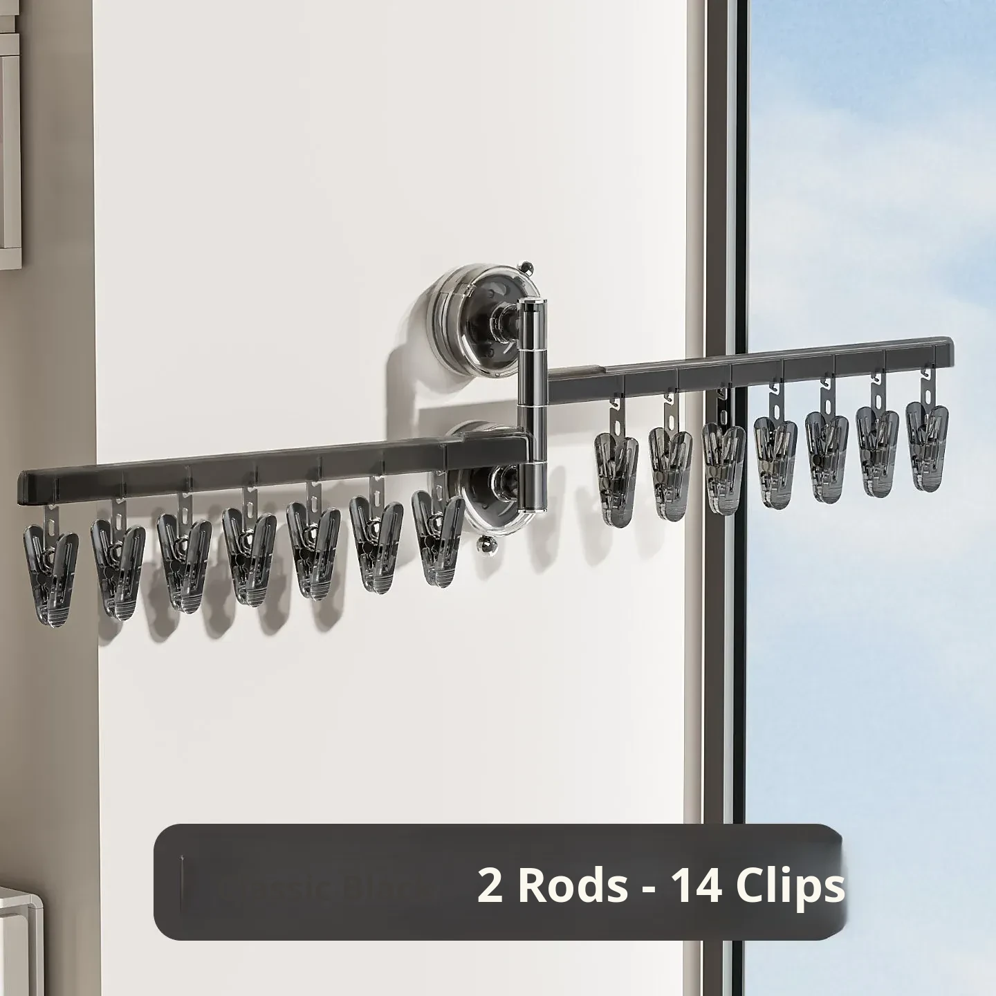 【Elegant Black】Three Poles and 21 Clips✅️Available in 108.°Rotating Drying