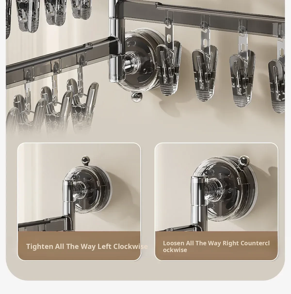 [Cream White] Three Poles and 21 Clips ✅️ Available in 108. ° Rotating Drying