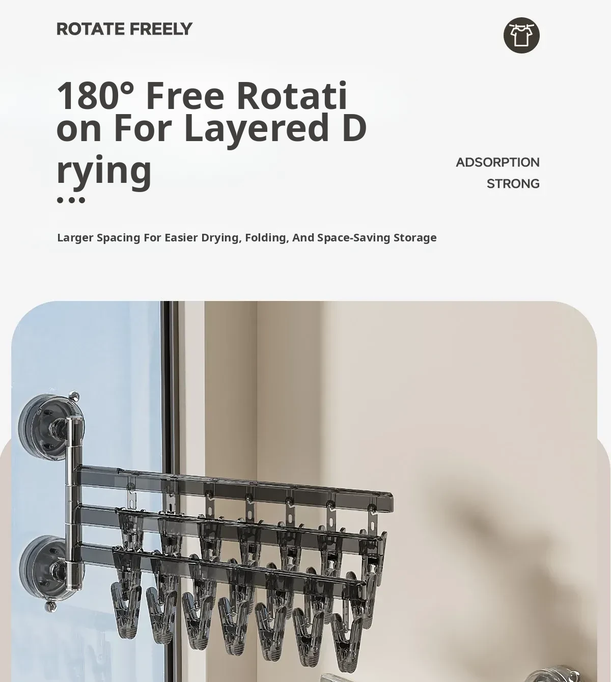 [Translucent White] Three Rods and 21 Clips✅️Available in 108.°Rotating Drying