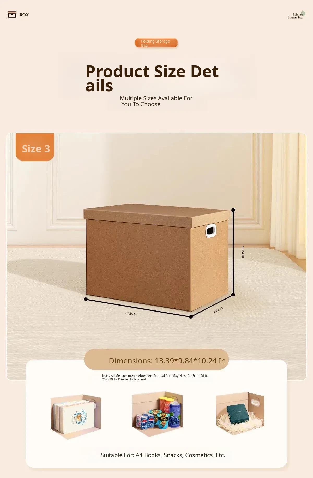 Small Cardboard Box, 22L Capacity, Dimensions 13.39in*9.84in*10.24in – Your Go-To Storage Solution