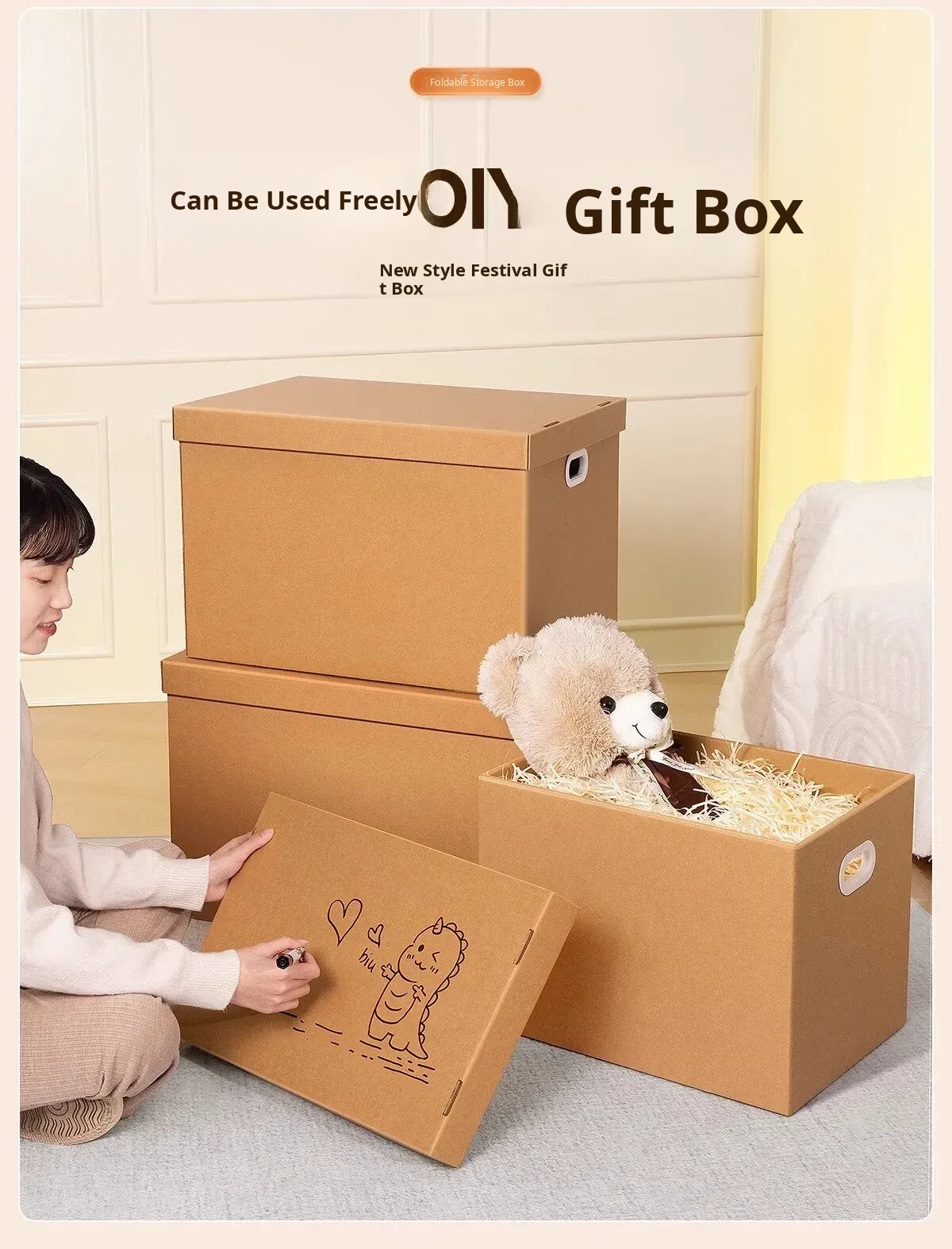 【Doodle Design Color Box - Couple】Size 9 63L Cardboard Box - Gift for Your Loved One