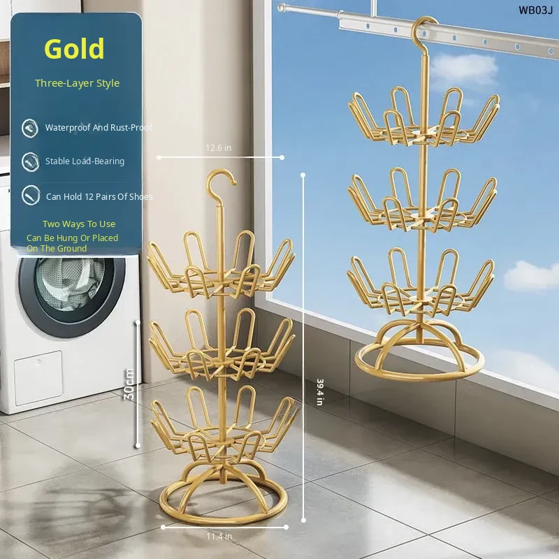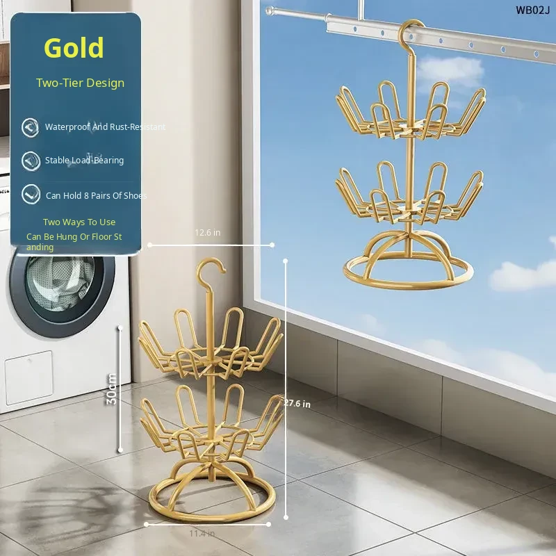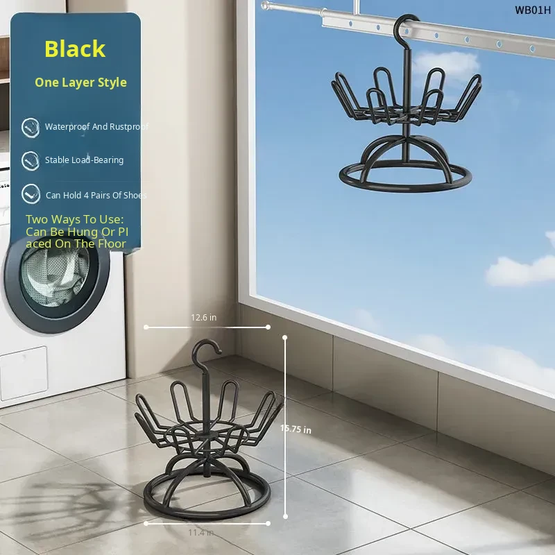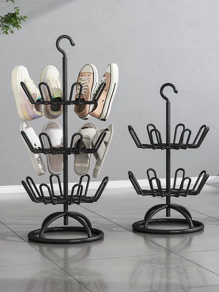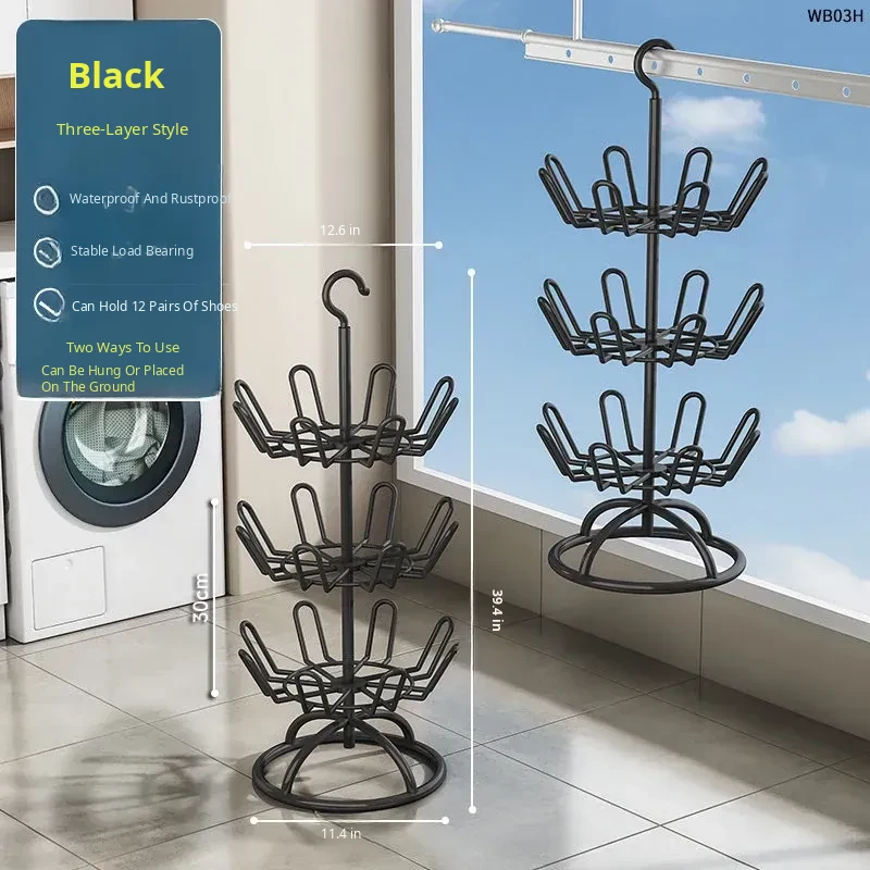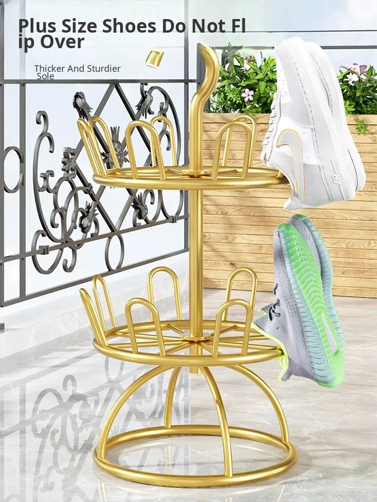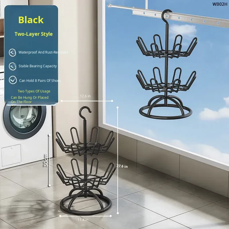 Outdoor Iron Shoe Drying Rack with Hooks - Multi-Functional Rotating Shoe Organizer for Balcony and Patio - The Ultimate Shoe Drying Solution!