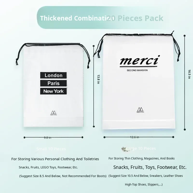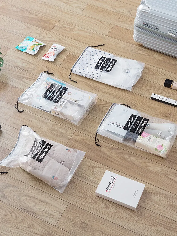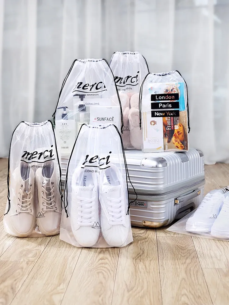 Travel Waterproof Packing Bags - Transparent Drawstring Storage Pouches for Business Trips and Seasonal Changes, Dust-Proof Sealed Bags, Perfect for Shoe Organization