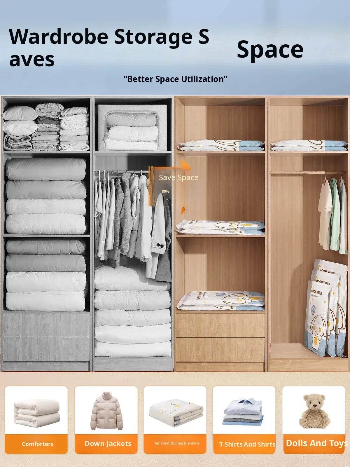 Vacuum Compression Bags for Efficient Storage - Ideal for Bedding, Clothes, and Down Jackets - Perfect for Suitcases and Travel Packing!