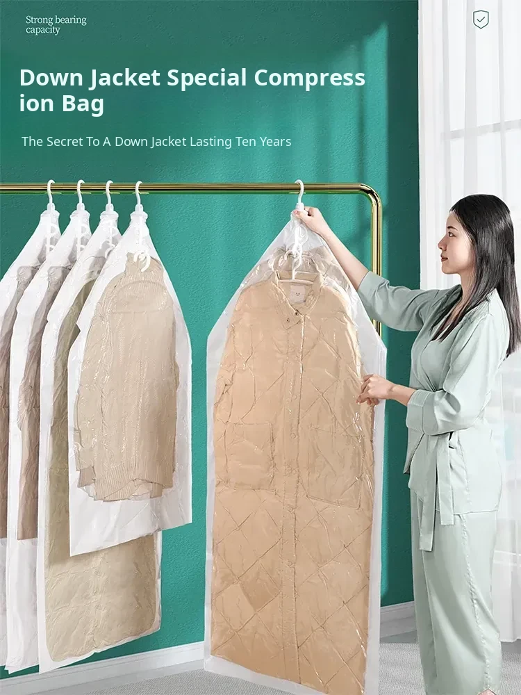 Vacuum Compression Storage Bags for Down Jackets - Hanging, Space-Saving, Air-Sealed Packing Solution for Clothes and Luggage - Perfect for Moving and Organizing Your Wardrobe