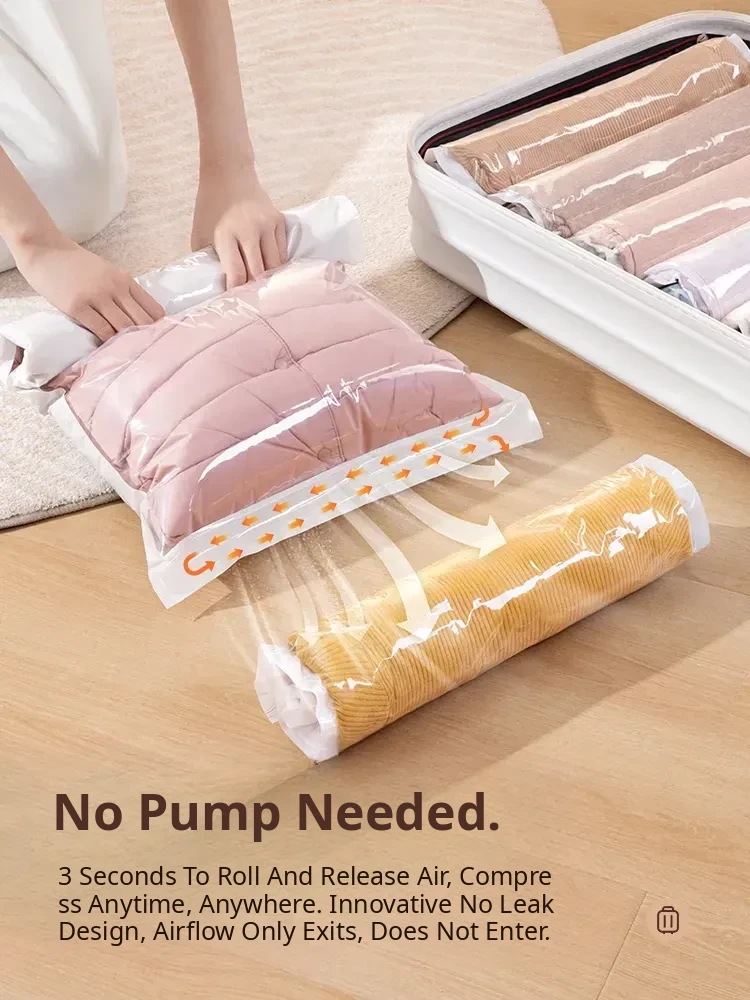 Travel Vacuum Compression Bags - Ultimate Storage Solution for Luggage, Clothes, and Down Jackets - No Pump Needed, Easy Roll-Up Design for Efficient Packing