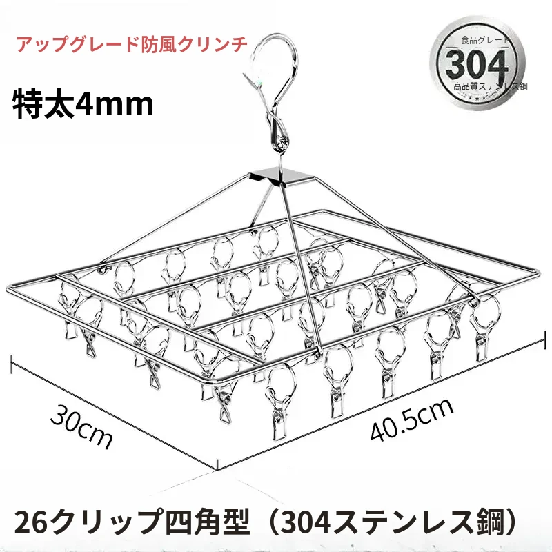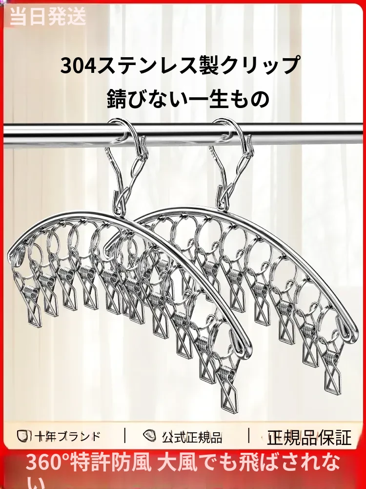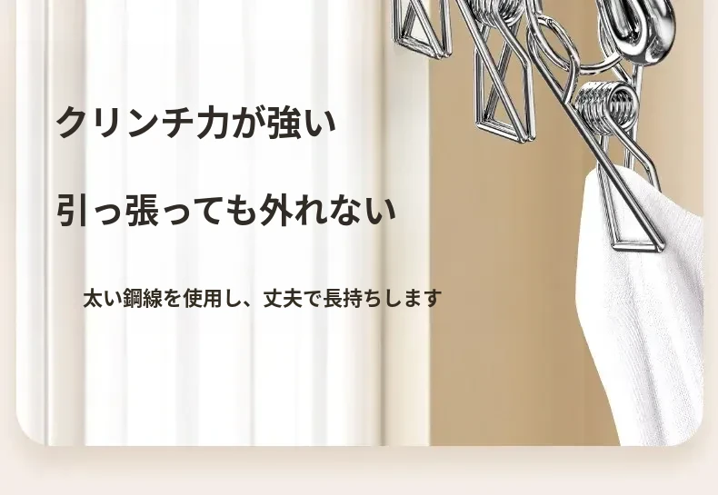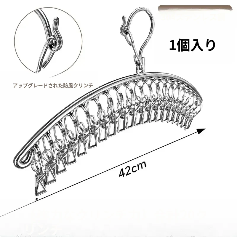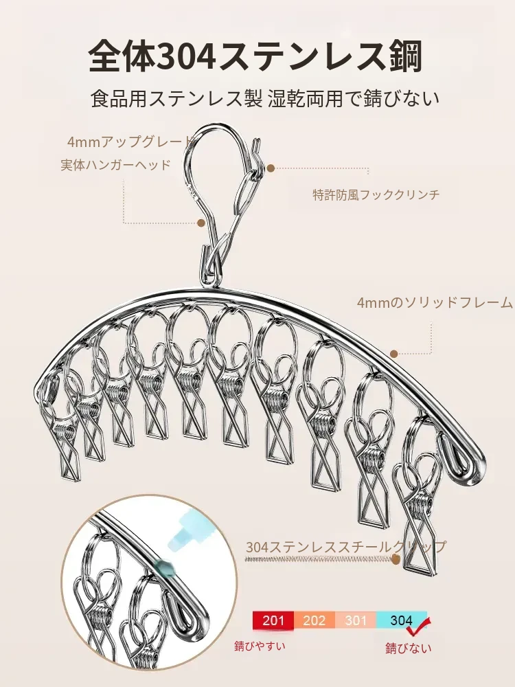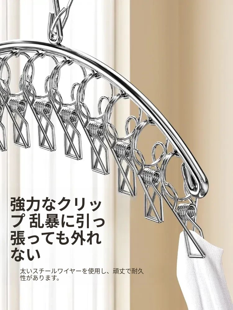304ステンレス製多クリップ靴下干しラック - 風に強い!多用途な衣類クリップで、バルコニーでも活躍する家庭用マルチユース神器!