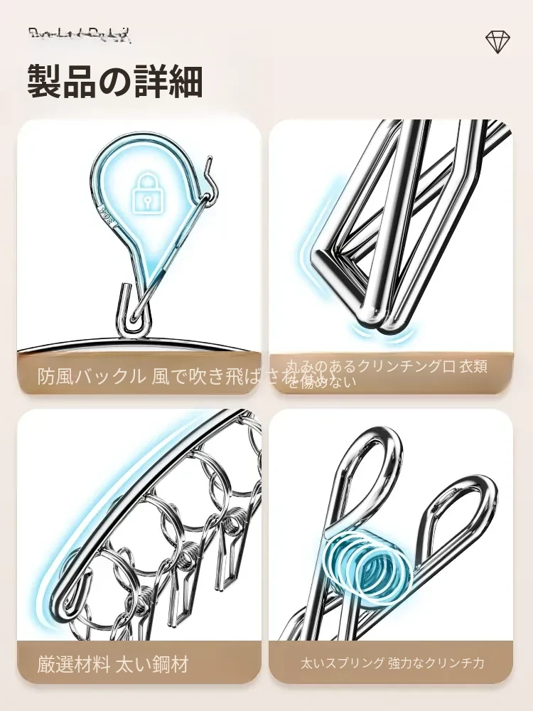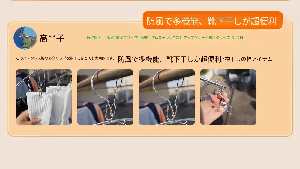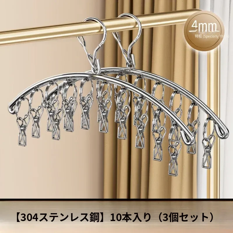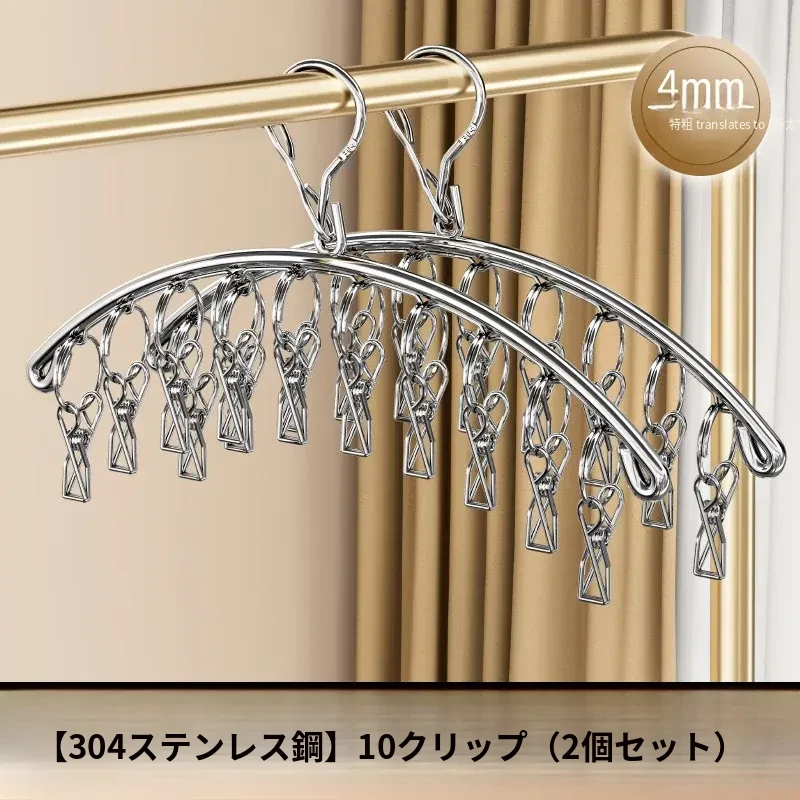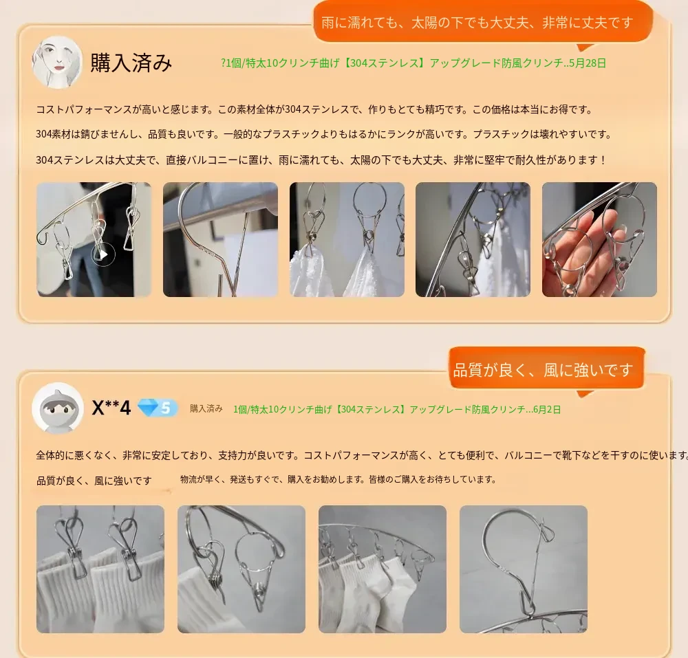 304ステンレス製多クリップ靴下干しラック - 風に強い!多用途な衣類クリップで、バルコニーでも活躍する家庭用マルチユース神器!