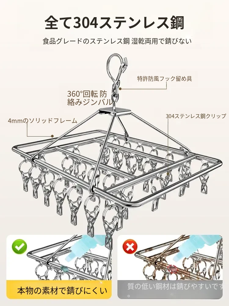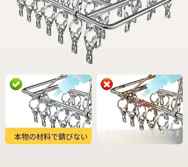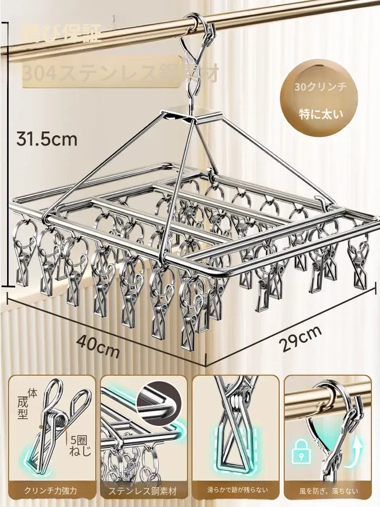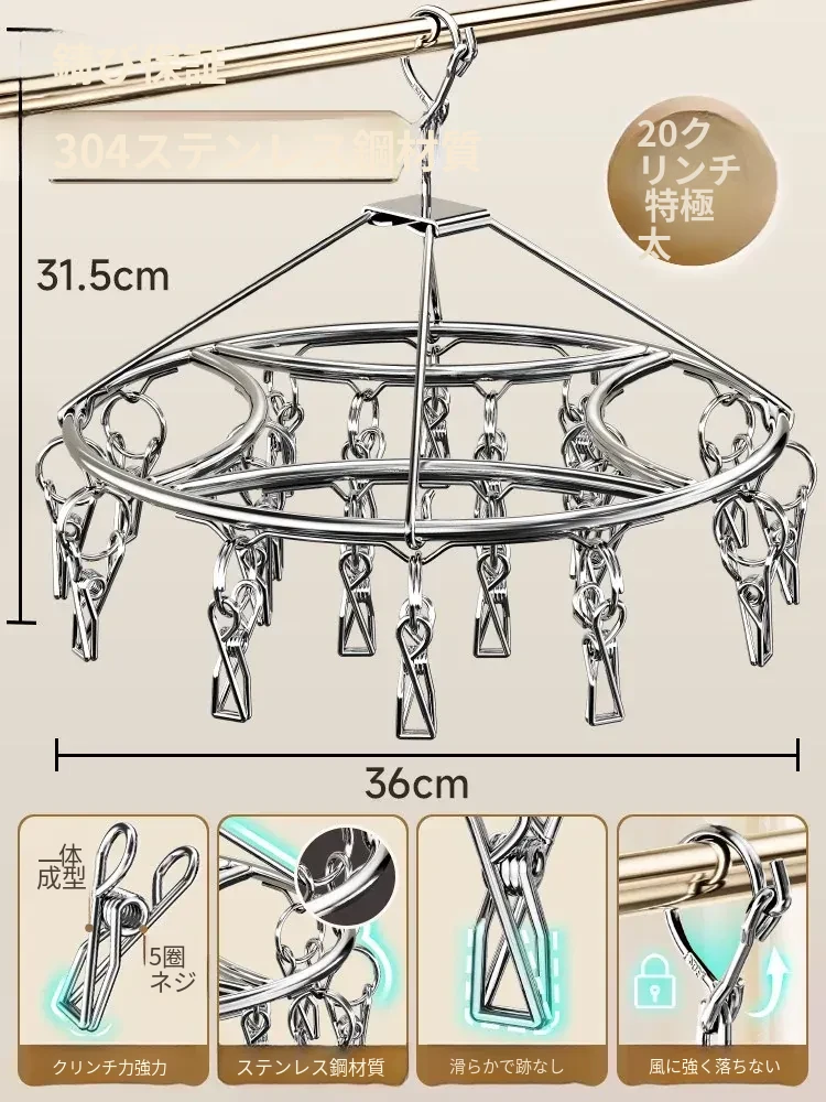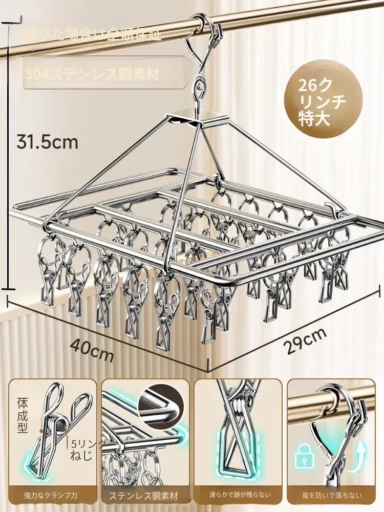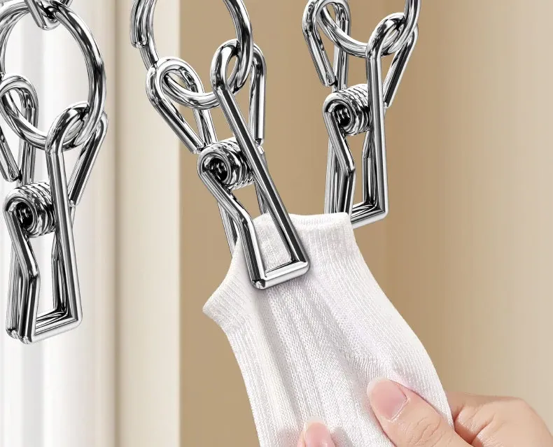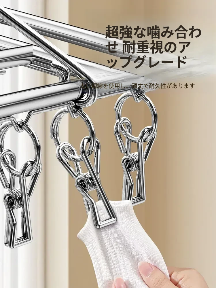 304ステンレス製靴下干しラック - 多機能クリップ付き、痕跡なし、家族用の靴下をしっかり乾かす神アイテム!